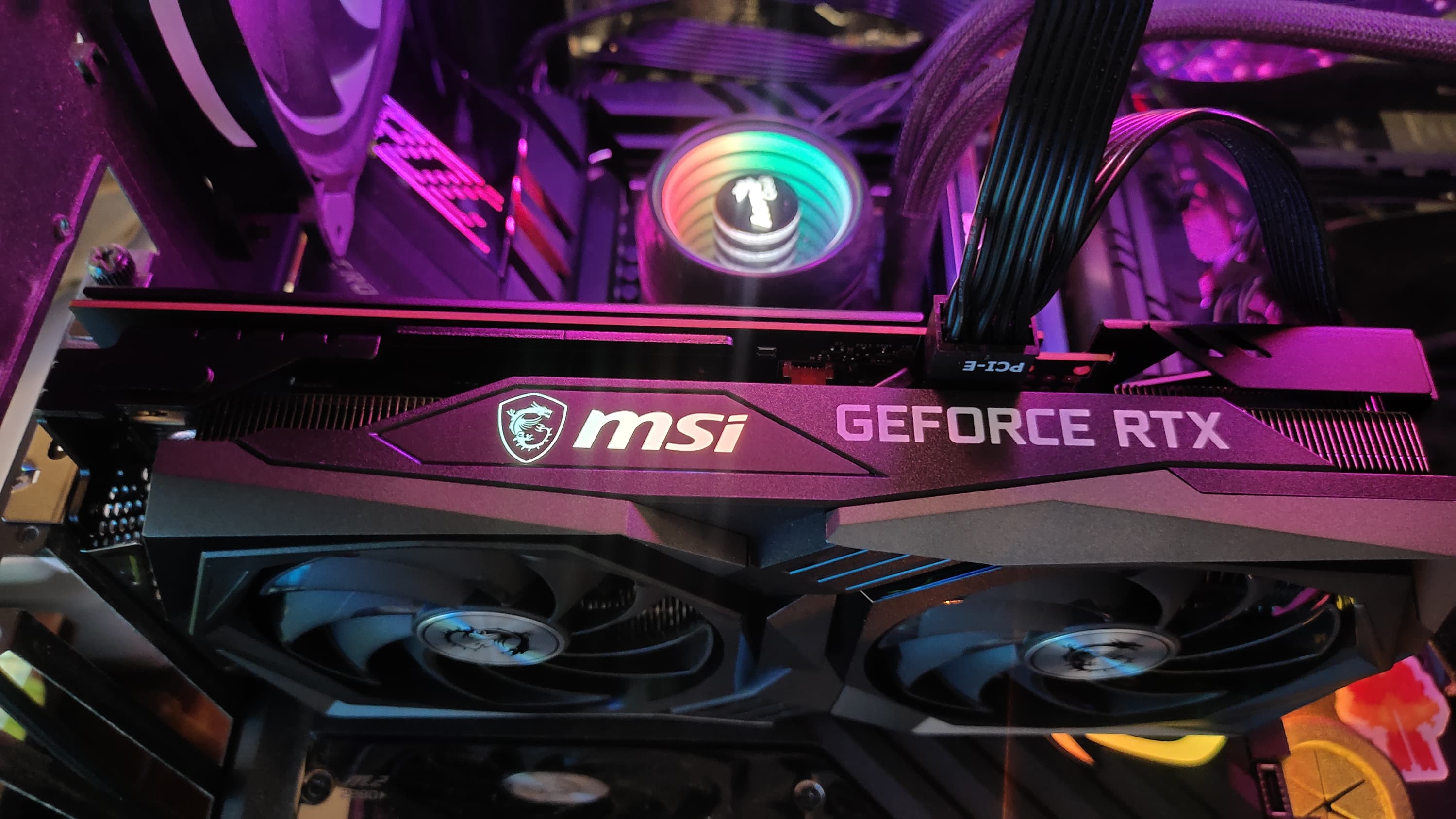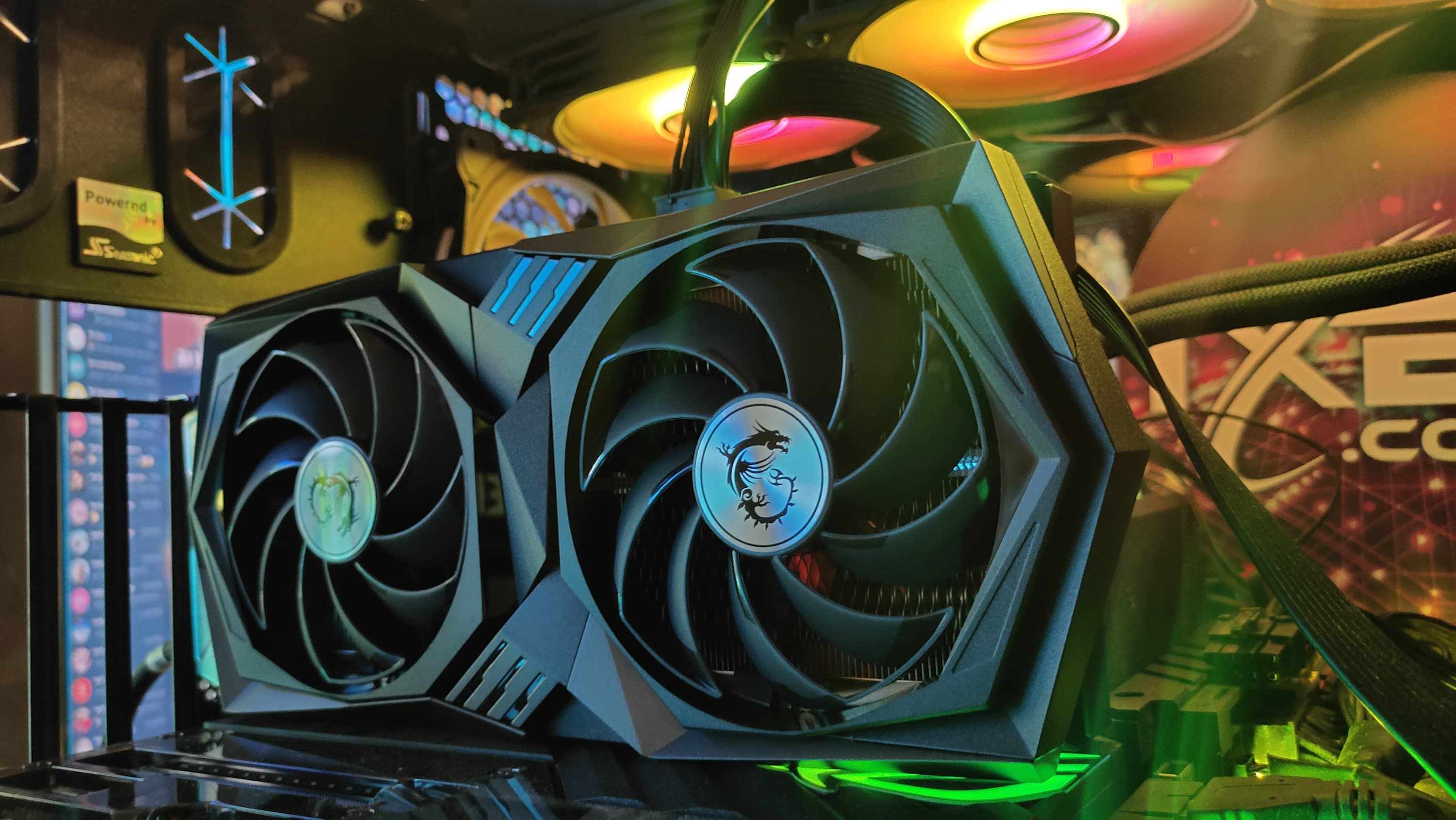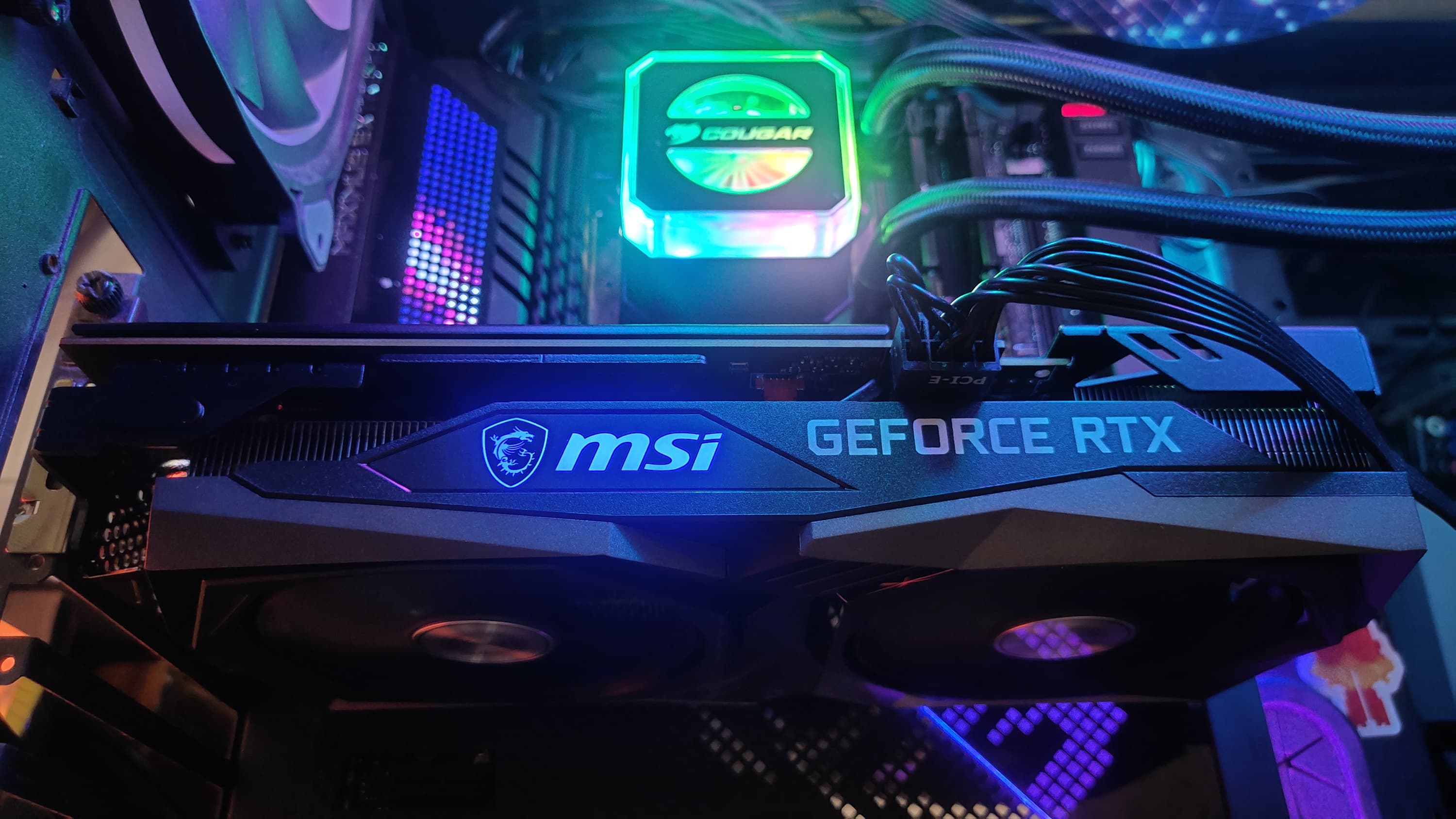Что касается самой карты, то ее отличает эффективная и очень тихая система охлаждения, однако карта с ней занимает более 2 слотов в системном блоке. Подсветка минимальная: лишь на верхнем торце светится логотип (подсветка отключается через MSI Center).