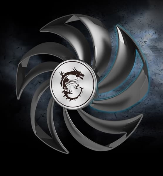 Поверх радиатора установлен кожух с двумя 90-миллиметровыми вентиляторами Torx Fan 4.0, каждый из которых имеет особый профиль лопастей: две лопасти соединены воедино, что создает повышенное воздушное давление.