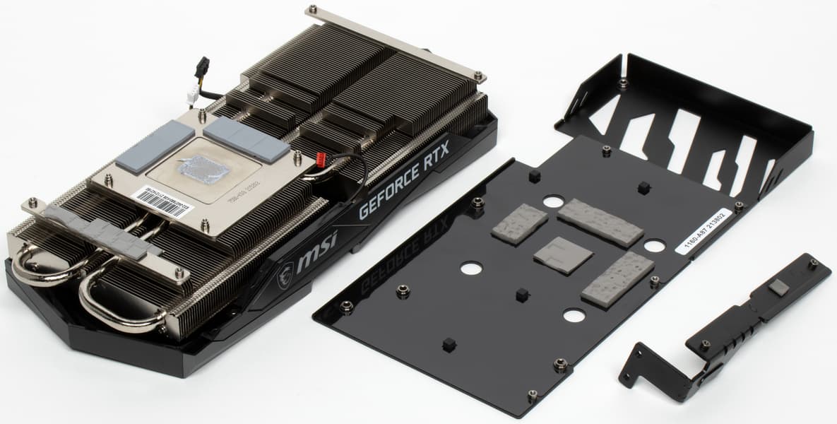 У карты двухсекционный никелированный радиатор из медного сплава. Тепловые трубки помогают равномерно распределить тепло по всей длине радиатора. Радиатор охлаждает графический процессор и микросхемы памяти через медную никелированную пластину. Для охлаждения силовых преобразователей имеется своя небольшая подошва на том же радиаторе.