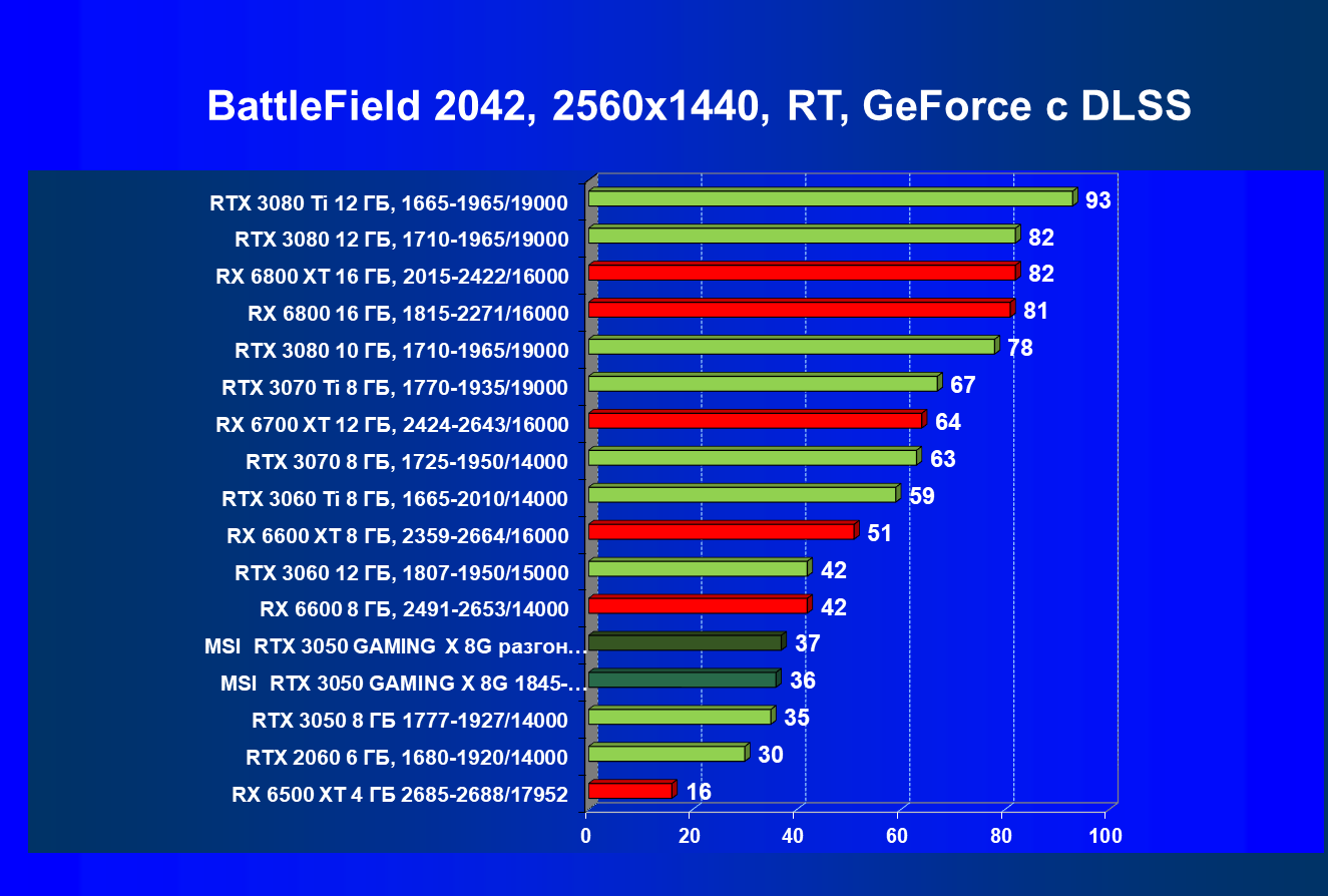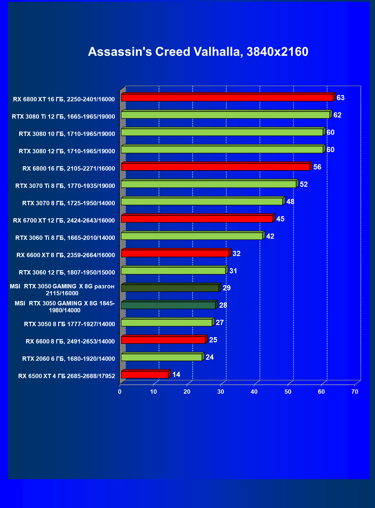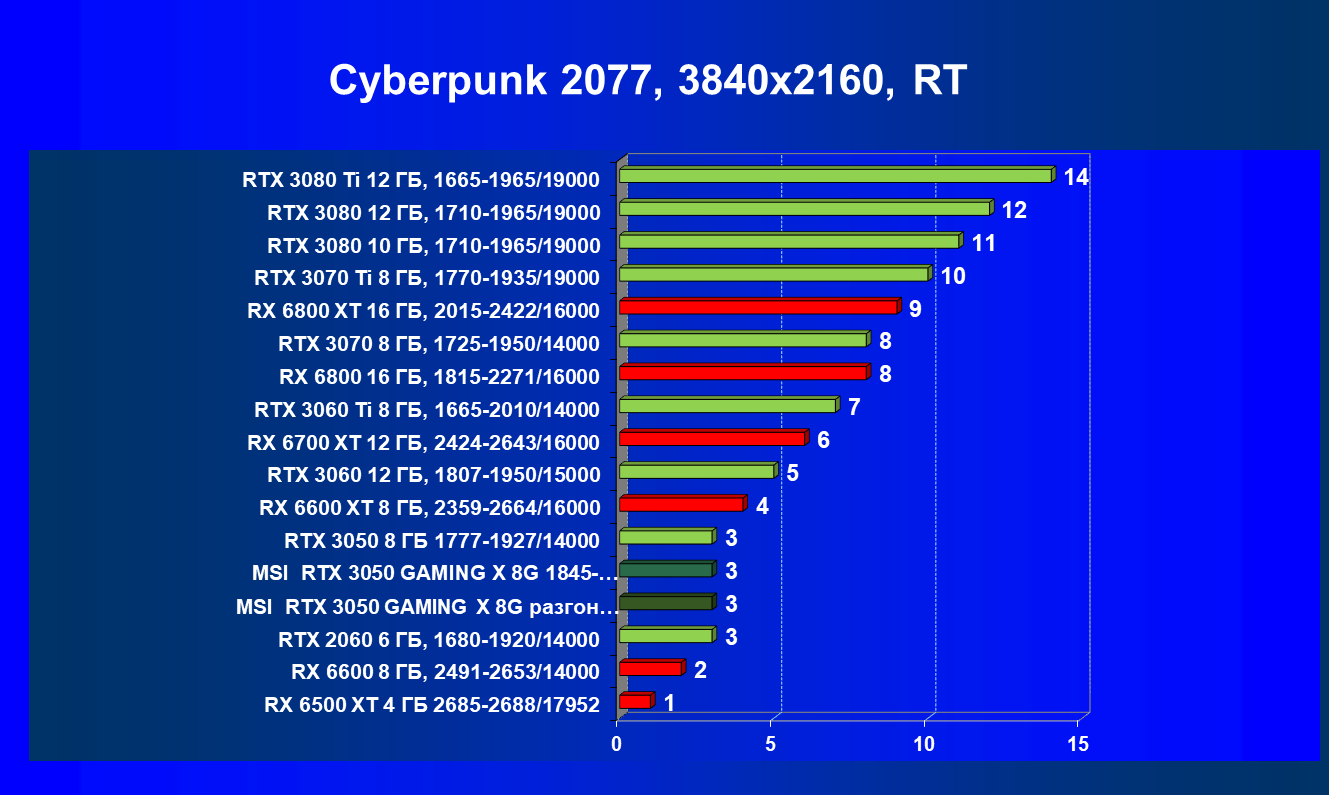 | 13 | MSI RTX 3050 Gaming X 8G, 1845—1980/14000 | 270 | 79 | 34 000 |