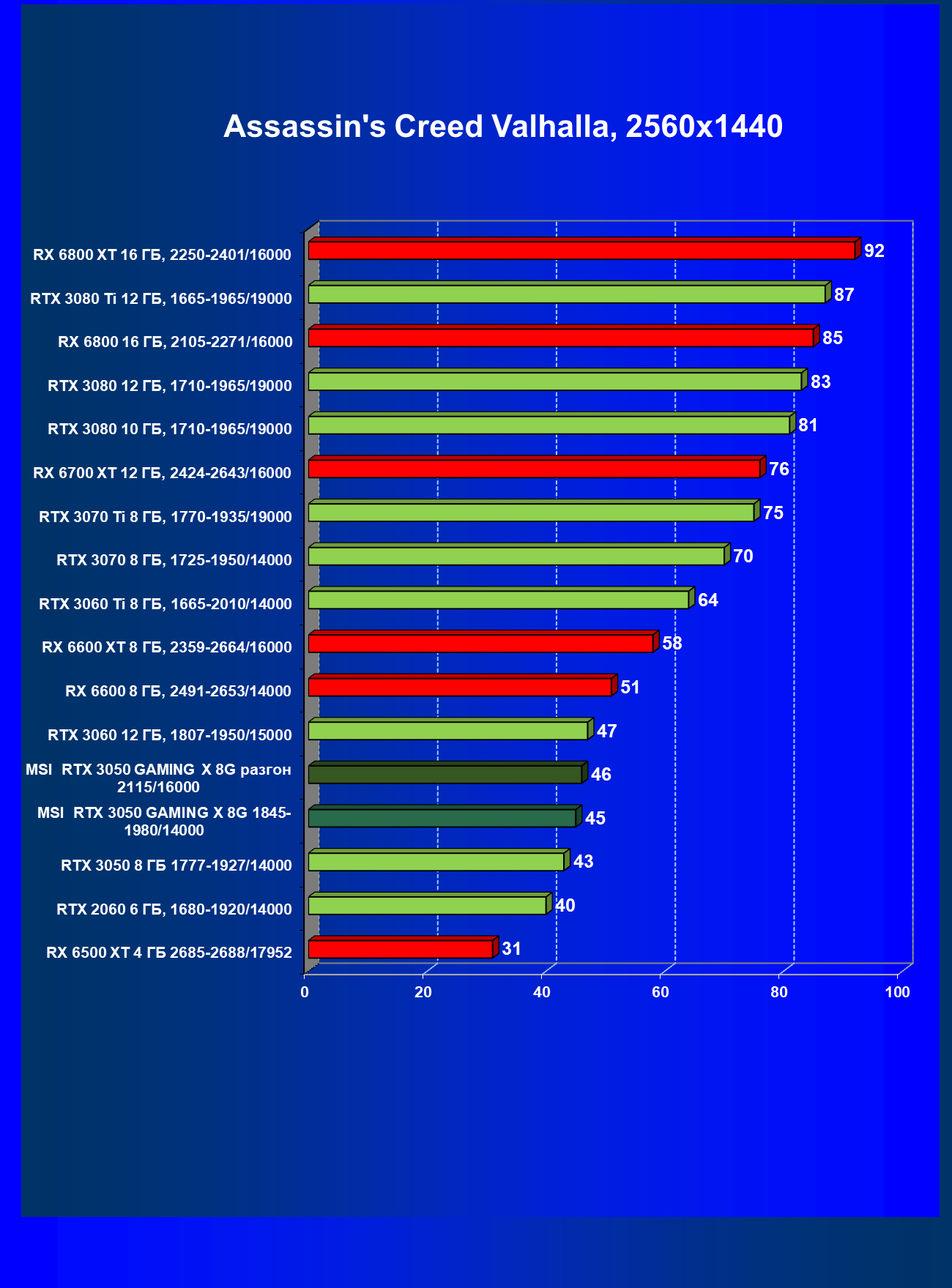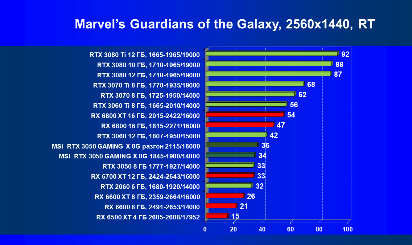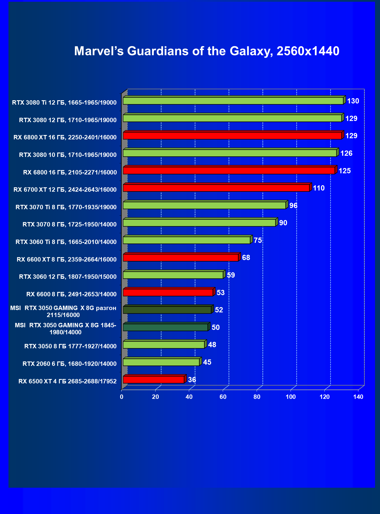 | 14 | MSI RTX 3050 Gaming X 8G, 1845—1980/14000 | 170 | 50 | 34 000 |