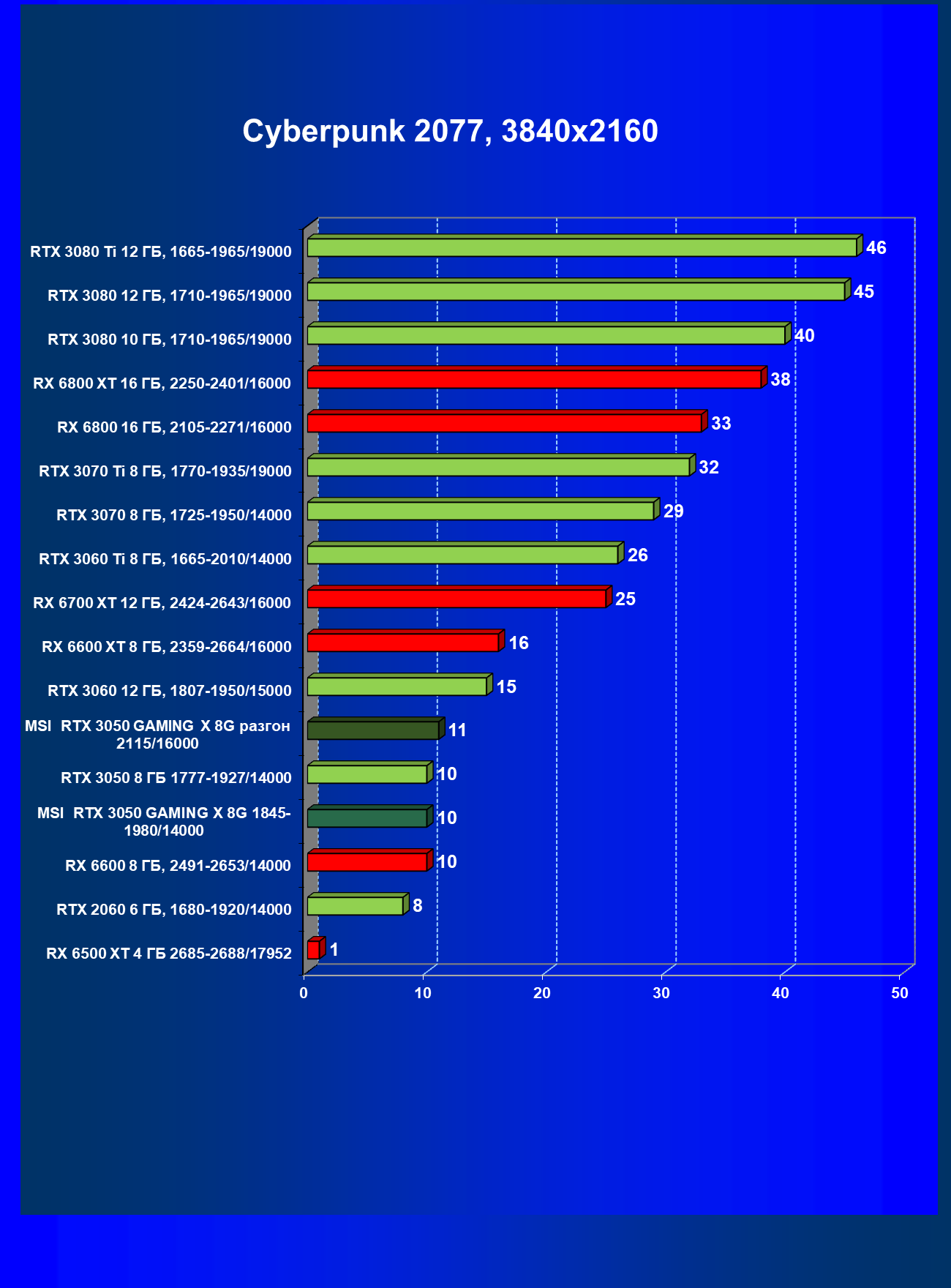 | 02 | MSI RTX 3050 Gaming X 8G, разгон до 2115/16000 | 53 | 180 | 34 000 |