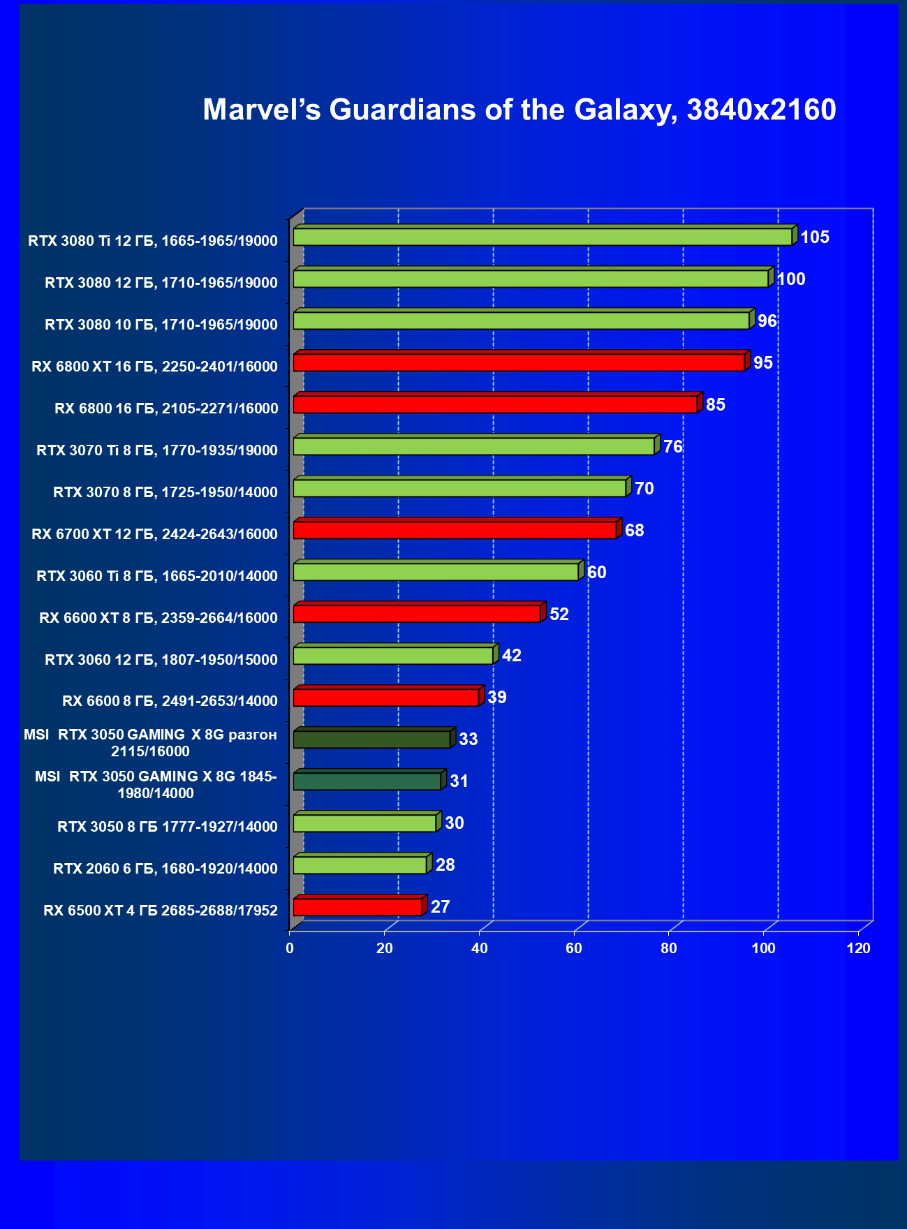 | 13 | MSI RTX 3050 Gaming X 8G, разгон до 2115/16000 | 180 | 53 | 34 000 |
