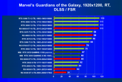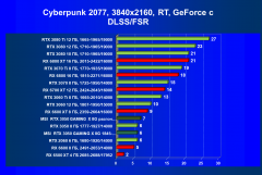 Результаты тестов со включенной аппаратной трассировкой лучей и/или DLSS/FSR в разрешениях 1920×1200, 2560×1440 и 3840×2160