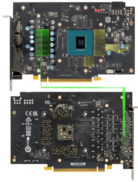 Сравнение с картой Gigabyte серии Eagle вынужденное: Nvidia не предоставляла обозревателям референс-карту GeForce RTX 3050, и в нашем базовом материале по RTX 3050 мы использовали именно карту Gigabyte. Очевидно, что карты имеют сходство только в расположении посадочных мест под микросхемы памяти вокруг ядра.