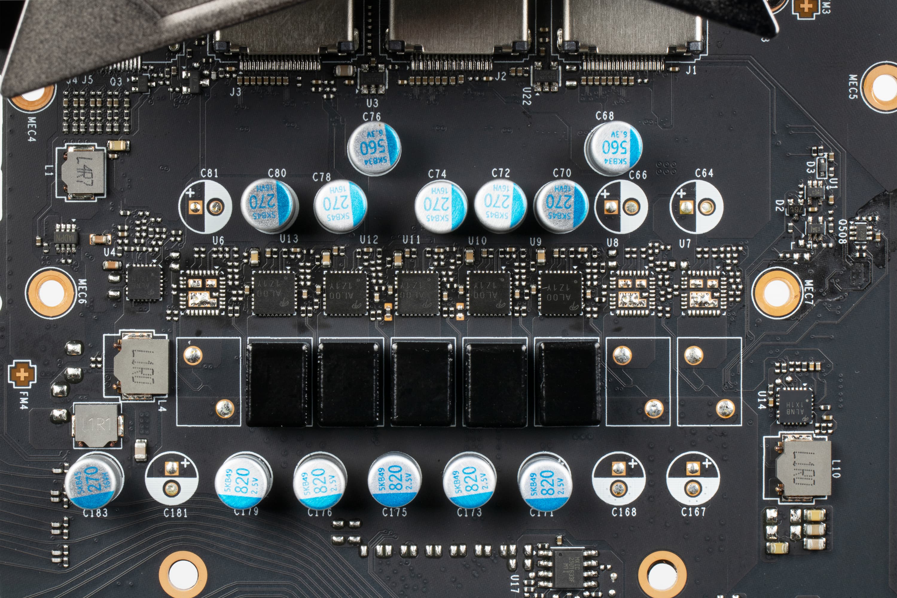 В преобразователе питания графического ядра установлены транзисторы AOZ5316 производителя Alpha&Omega Semiconductor, рассчитанные на ток максимум в 55 А.