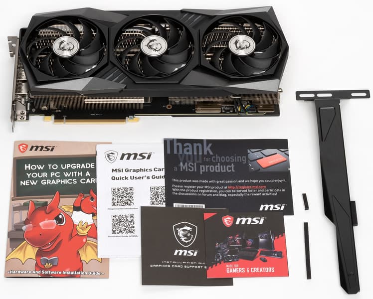 Видеокарта MSI имеет немного повышенные частоты работы GPU, это обеспечивает небольшой прирост производительности. Важнее — стабильность работы, а для этого у карты есть хорошая система питания (включая три коннектора питания, что позволяет несколько снизить нагрузку на каждый) и надежное охлаждение. А в комплекте поставки идет кронштейн-опора для монтажа в системный блок.