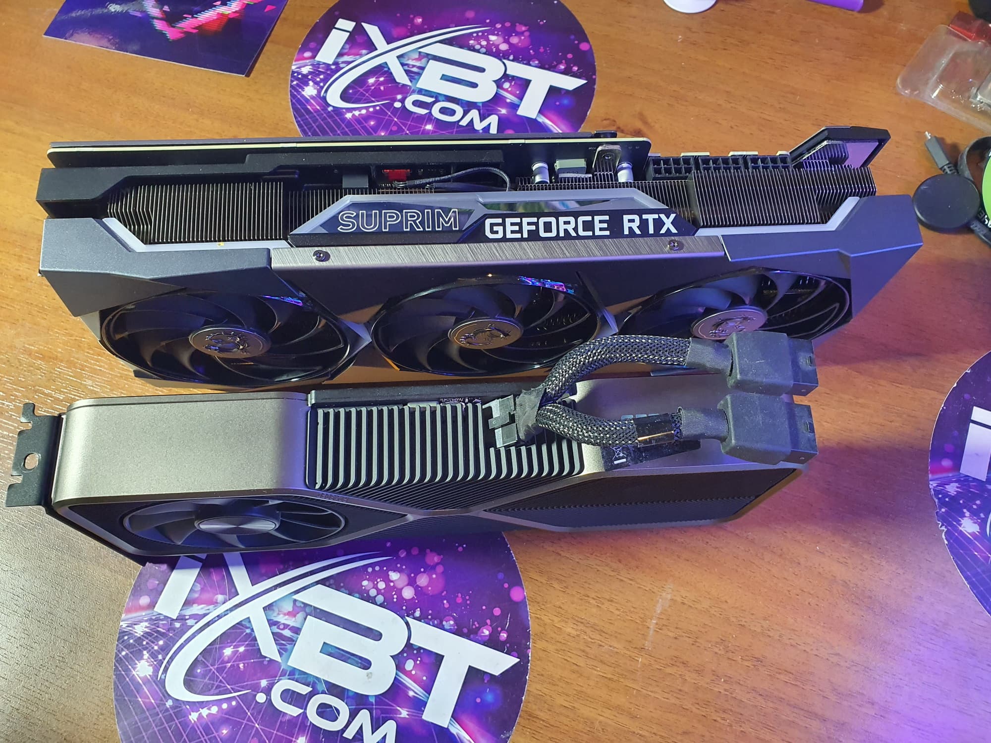 Стоит акцентировать внимание на внешних отличиях карты MSI и GeForce RTX 3080 Ti FE.