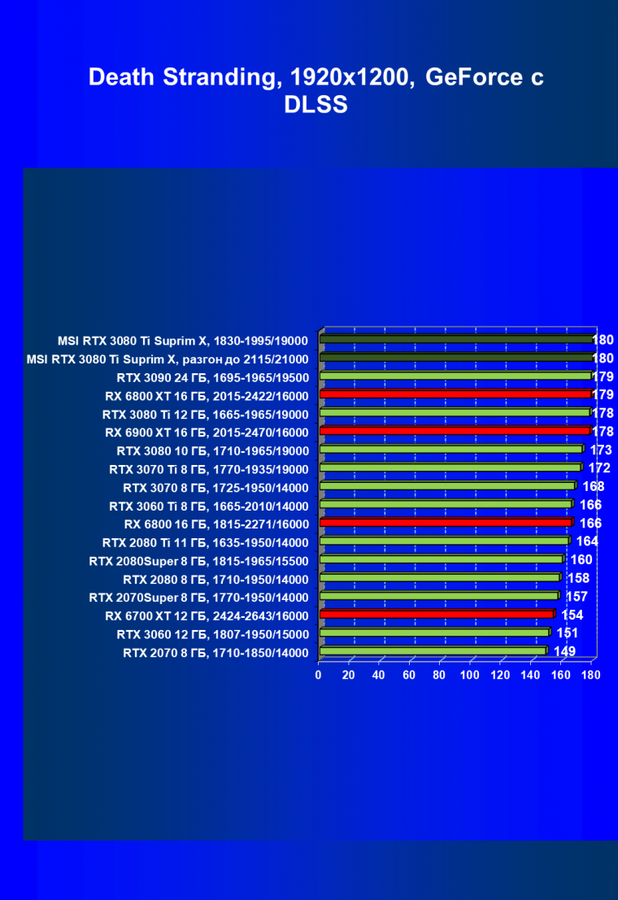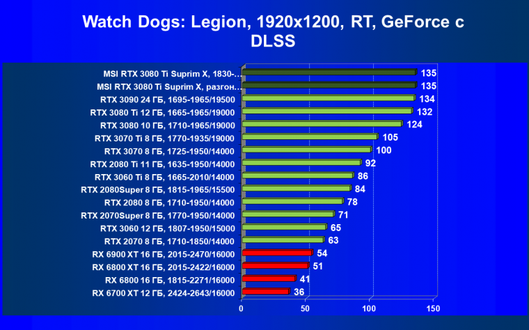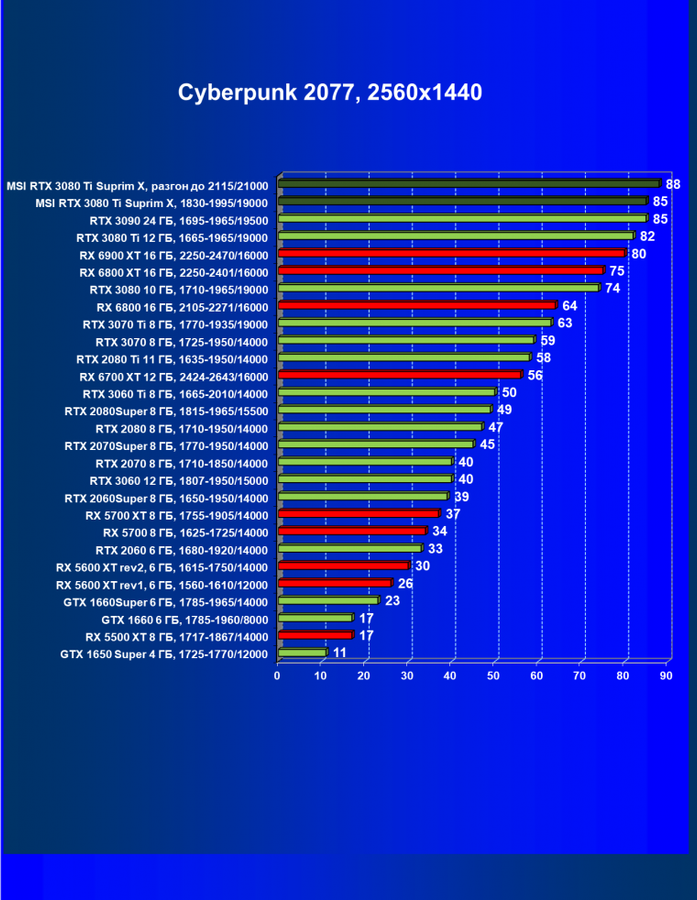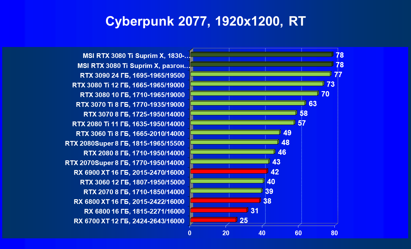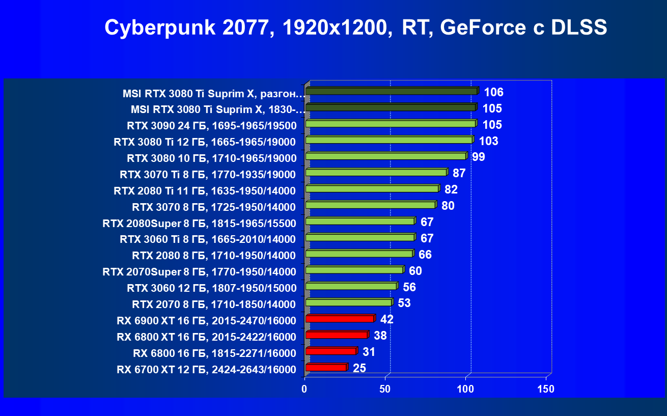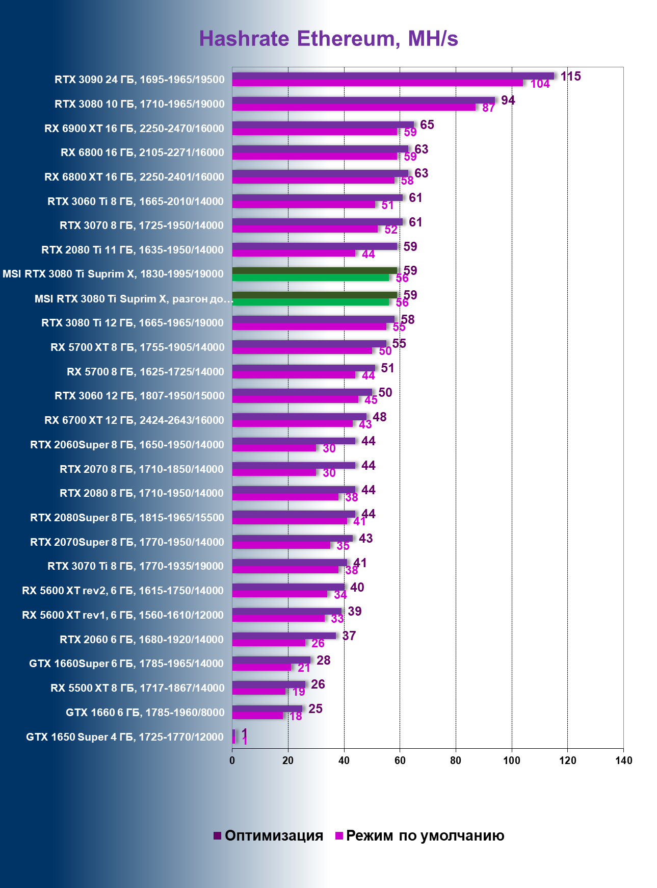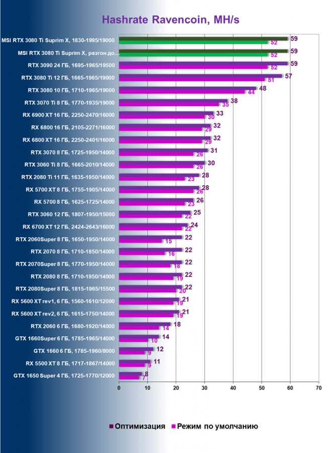 | 13 | MSI RTX 3080 Ti Suprim X, 1830—1995/19000 | 48 | 948 | 196 000 |
