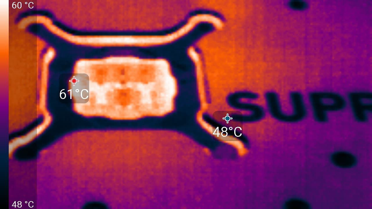 Максимальный нагрев наблюдался в центральной части PCB, в основном около ядра.