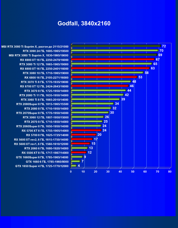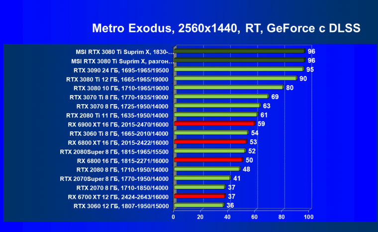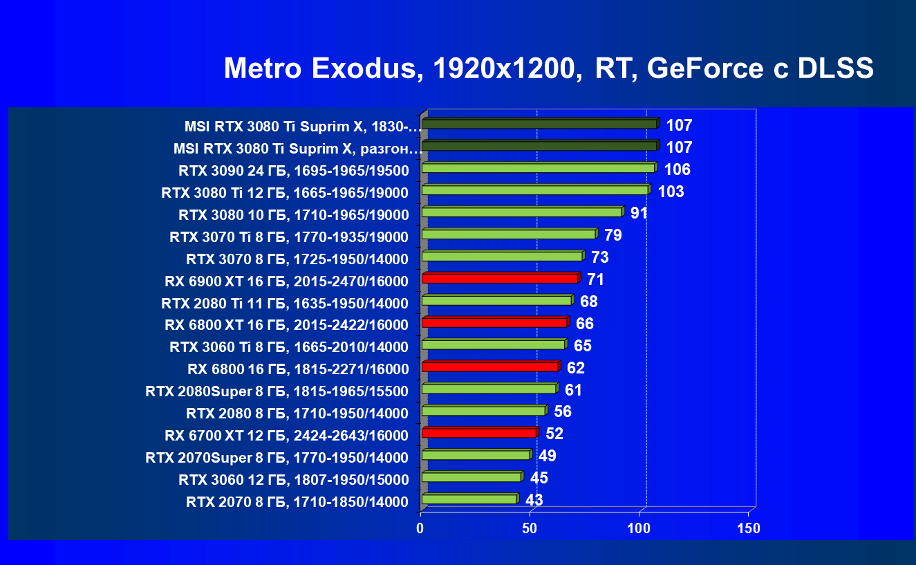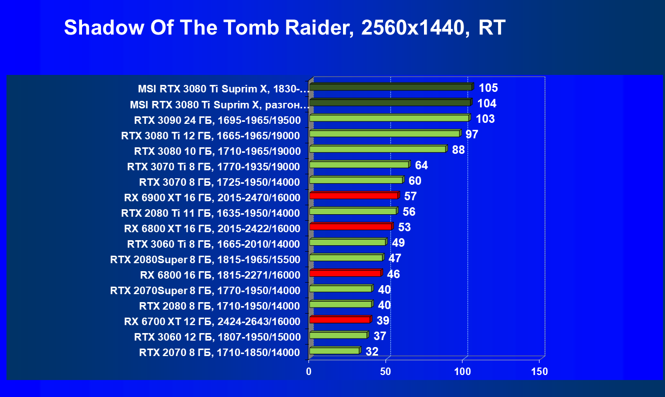 Повышенные частоты работы карты MSI вывели ее в абсолютные лидеры: она обогнала не только RX 6900 XT, но и RTX 3090!