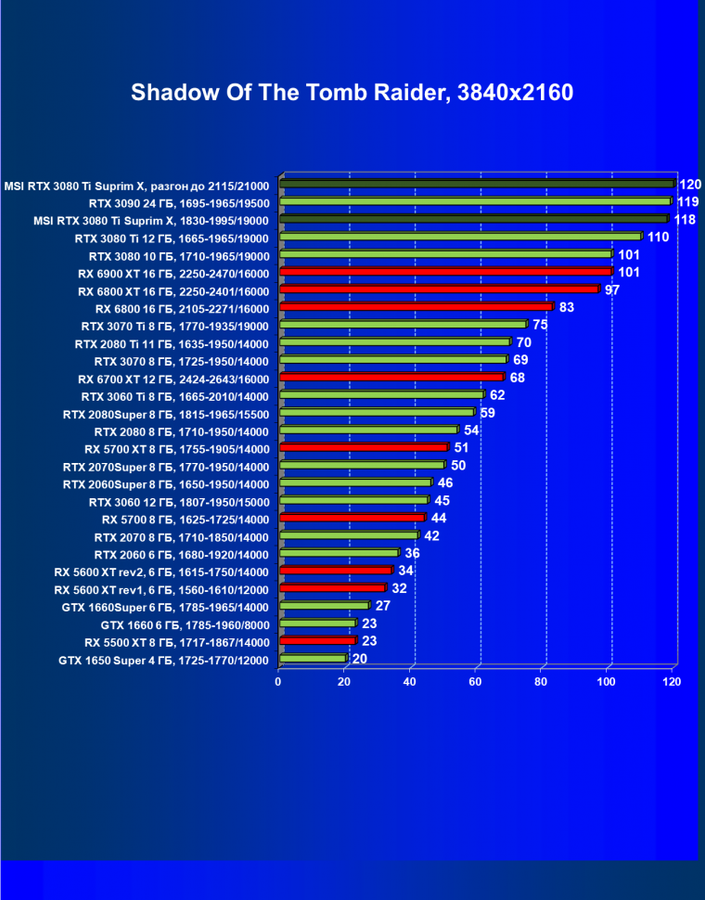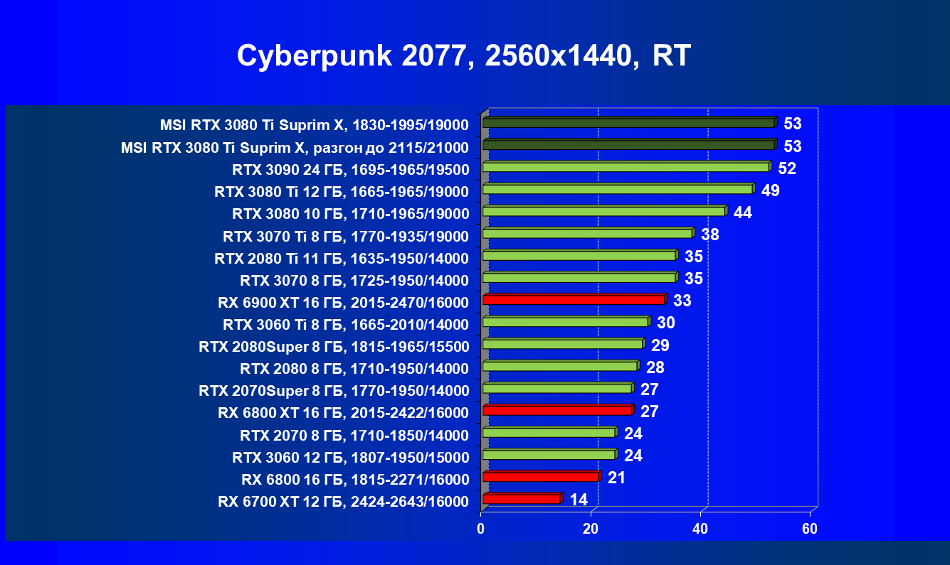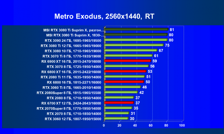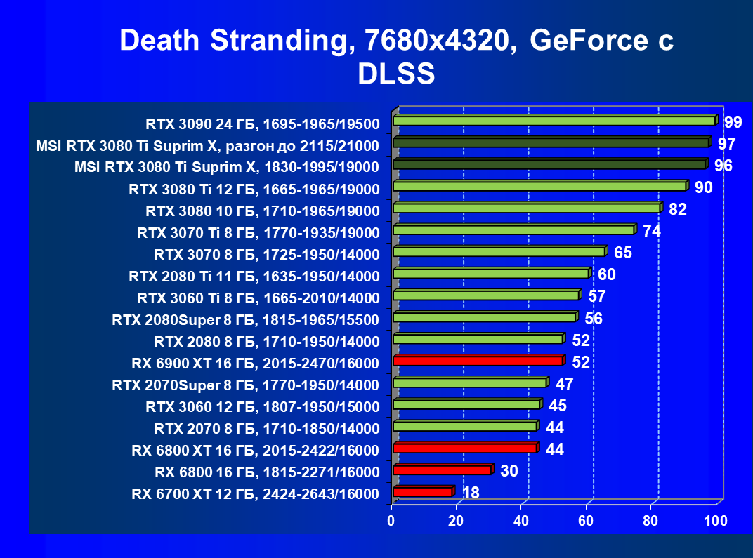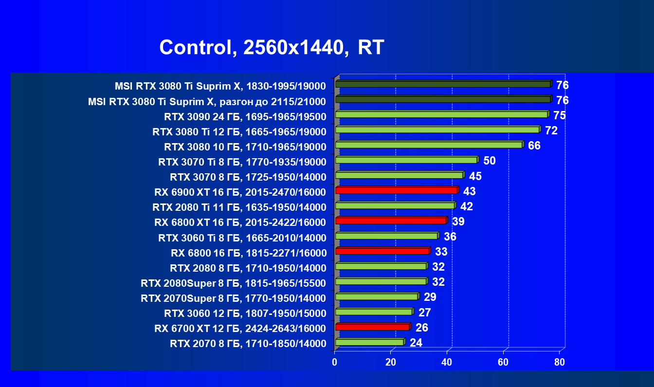 Повышенные частоты работы карты MSI вывели ее в абсолютные лидеры: она обогнала не только RX 6900 XT, но и RTX 3090!