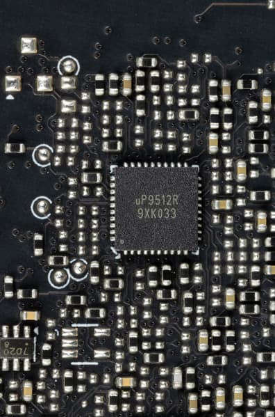 На оборотной стороне имеется еще один контроллер uS5650Q (uPI Semiconductor), отвечающий уже за мониторинг карты (отслеживание напряжений и температуры).