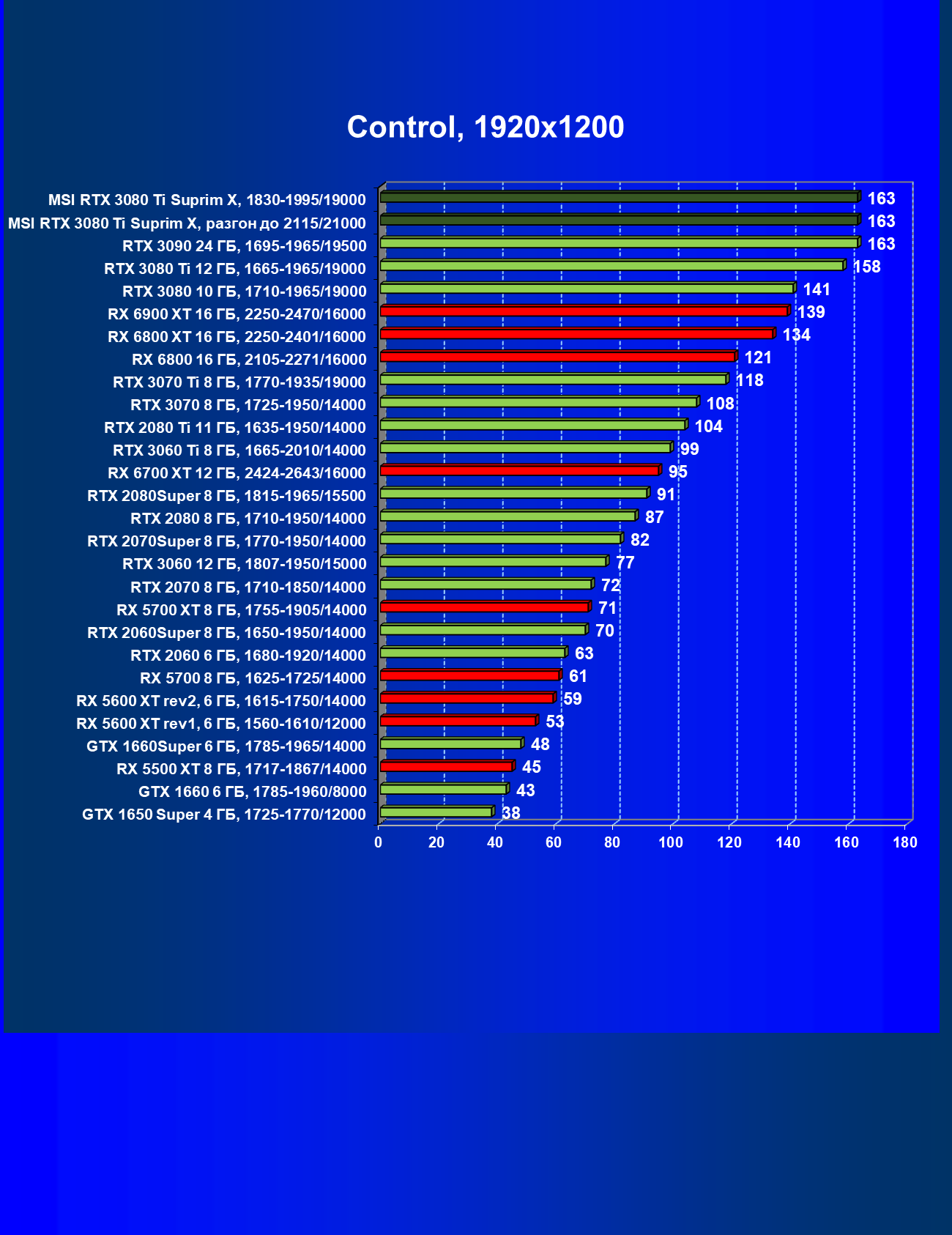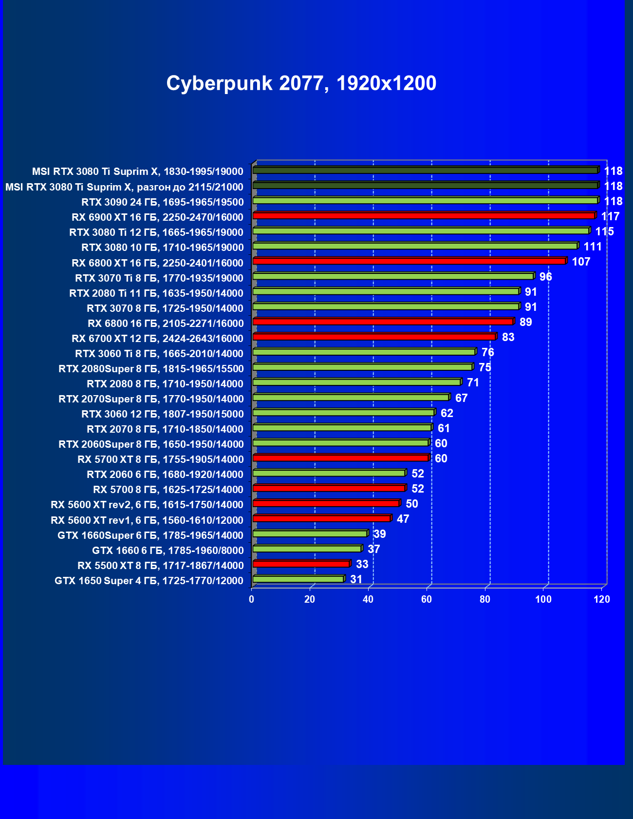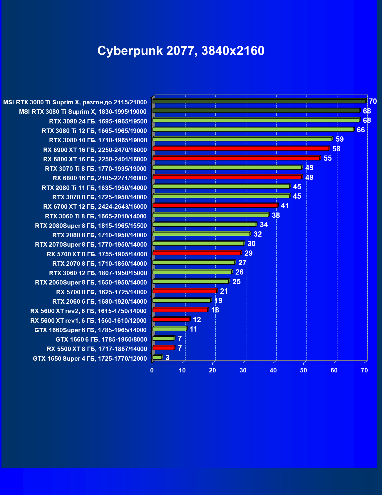 | 06 | MSI RTX 3080 Ti Suprim X, 1830—1995/19000 | 14 | 281 | 196 000 |