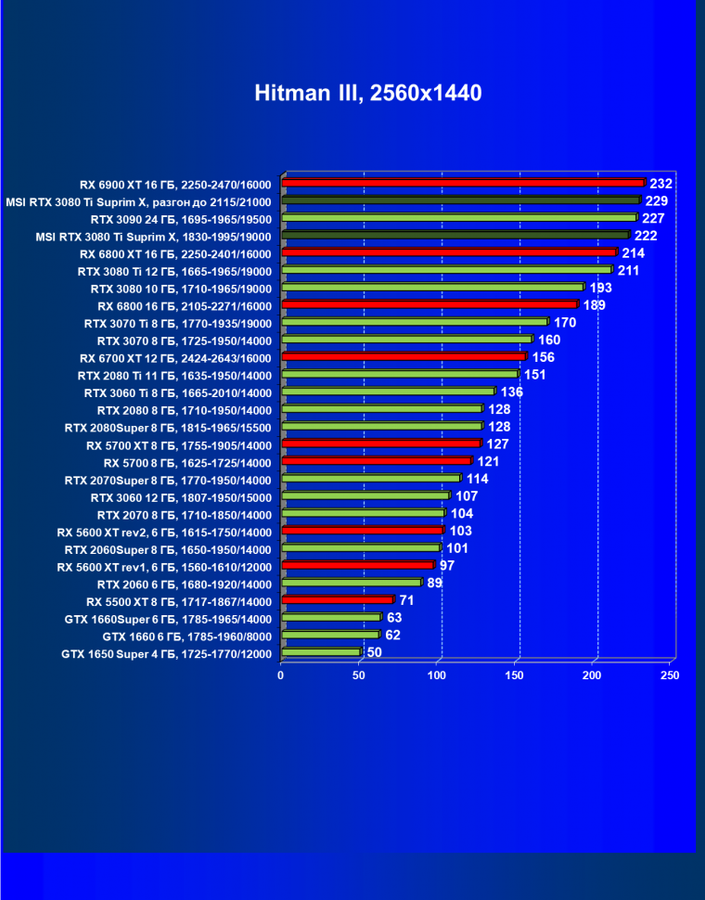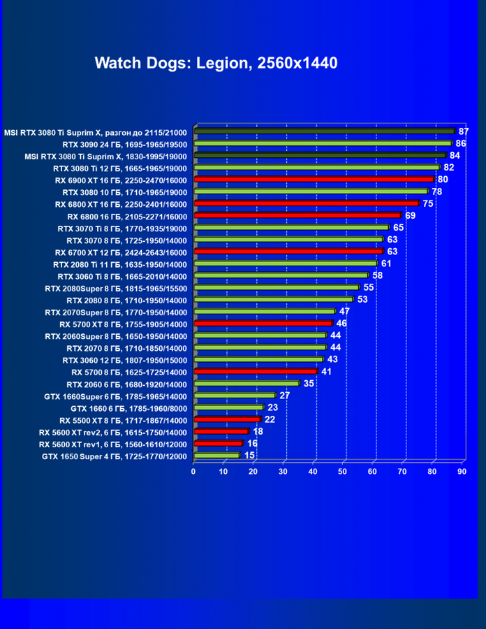 | 15 | RX 6900 XT 16 ГБ, 2015—2470/16000 | 11 | 185 | 162 000 |