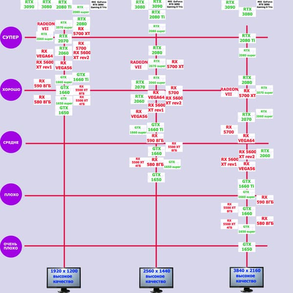 В начале всех обзоров серийных видеокарт мы обновляем свои знания о производительности семейства, к которому относится ускоритель, и его соперников. Все это нами субъективно оценивается по шкале из пяти градаций.