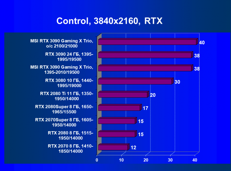 Напоминаю, что в целом GeForce RTX 3090 предназначен для тех энтузиастов ПК-игр, которые планируют играть в разрешении 4K при использовании максимальных настроек качества, с RTX и DLSS. В ряде игр редкие владельцы 8К-телевизоров смогут порадоваться и картинке в таком сверхвысоком разрешении, как 7680×4320.