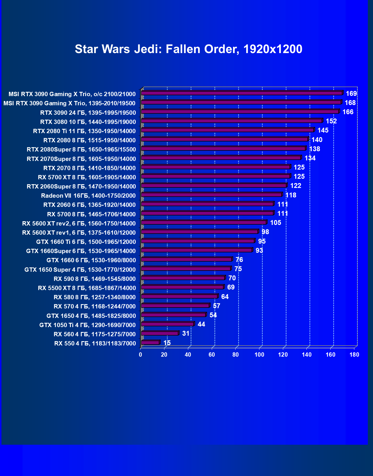 Обсуждение этого рейтинга бессмысленно, потому что GeForce RTX 3090 кроме игровых возможностей предоставляет еще и профессиональные, а на цену сильно влияет дефицит таких карт на момент подготовки обзора. Впрочем, топовые видеокарты все равно всегда проигрывают всем конкурентам в рейтинге полезности. Опять же, этот рейтинг не учитывает ни позиционирование и профпригодность продукта, ни особенности карты, типа габаритов, СО, шума, набора видеовыходов, энергопотребления и т. п.