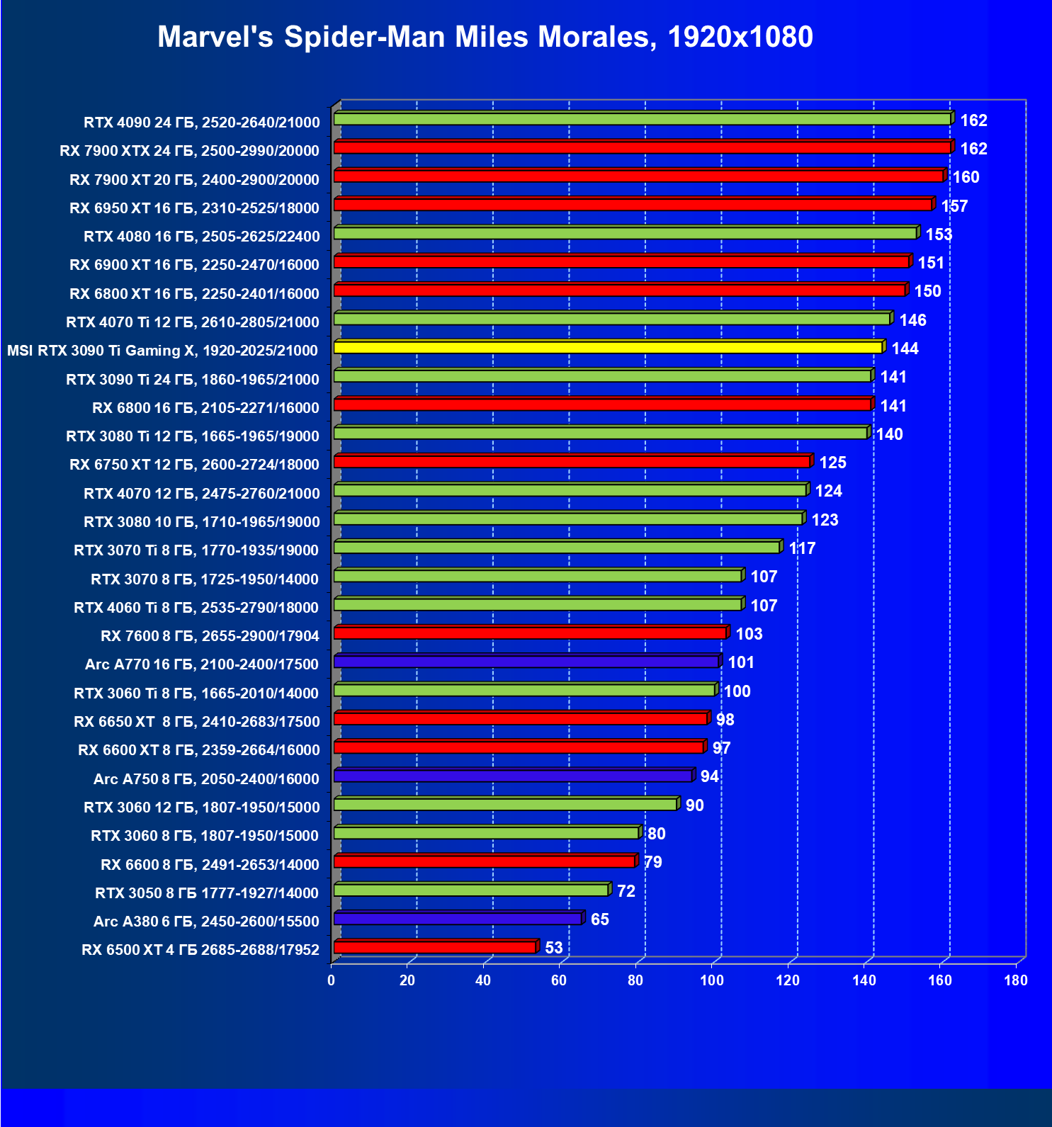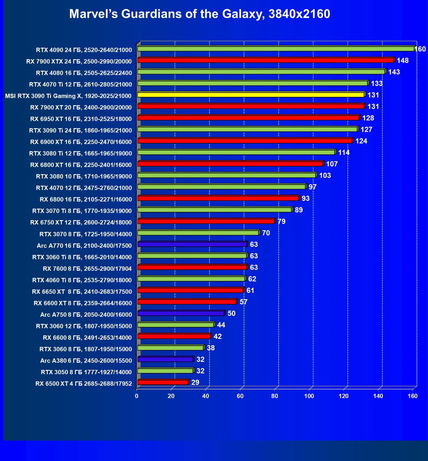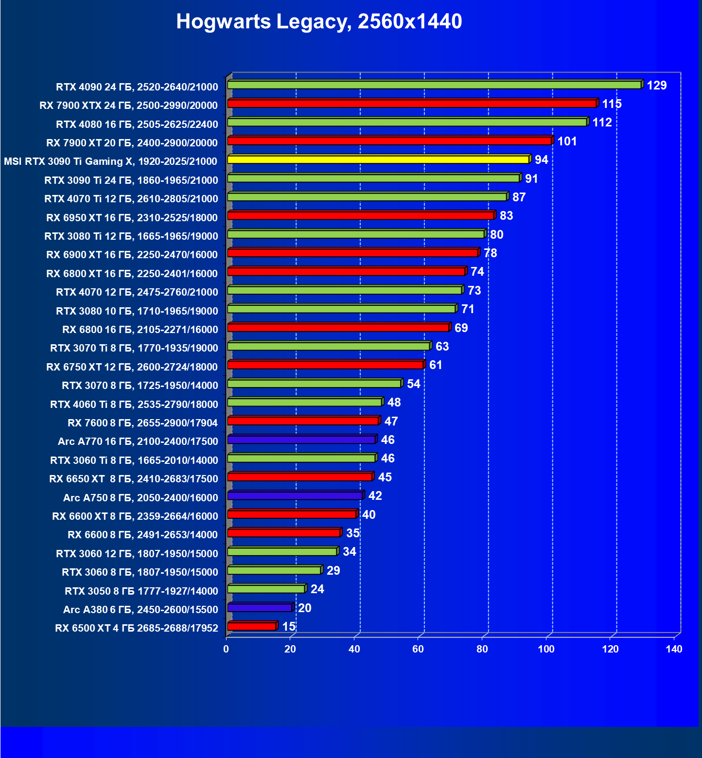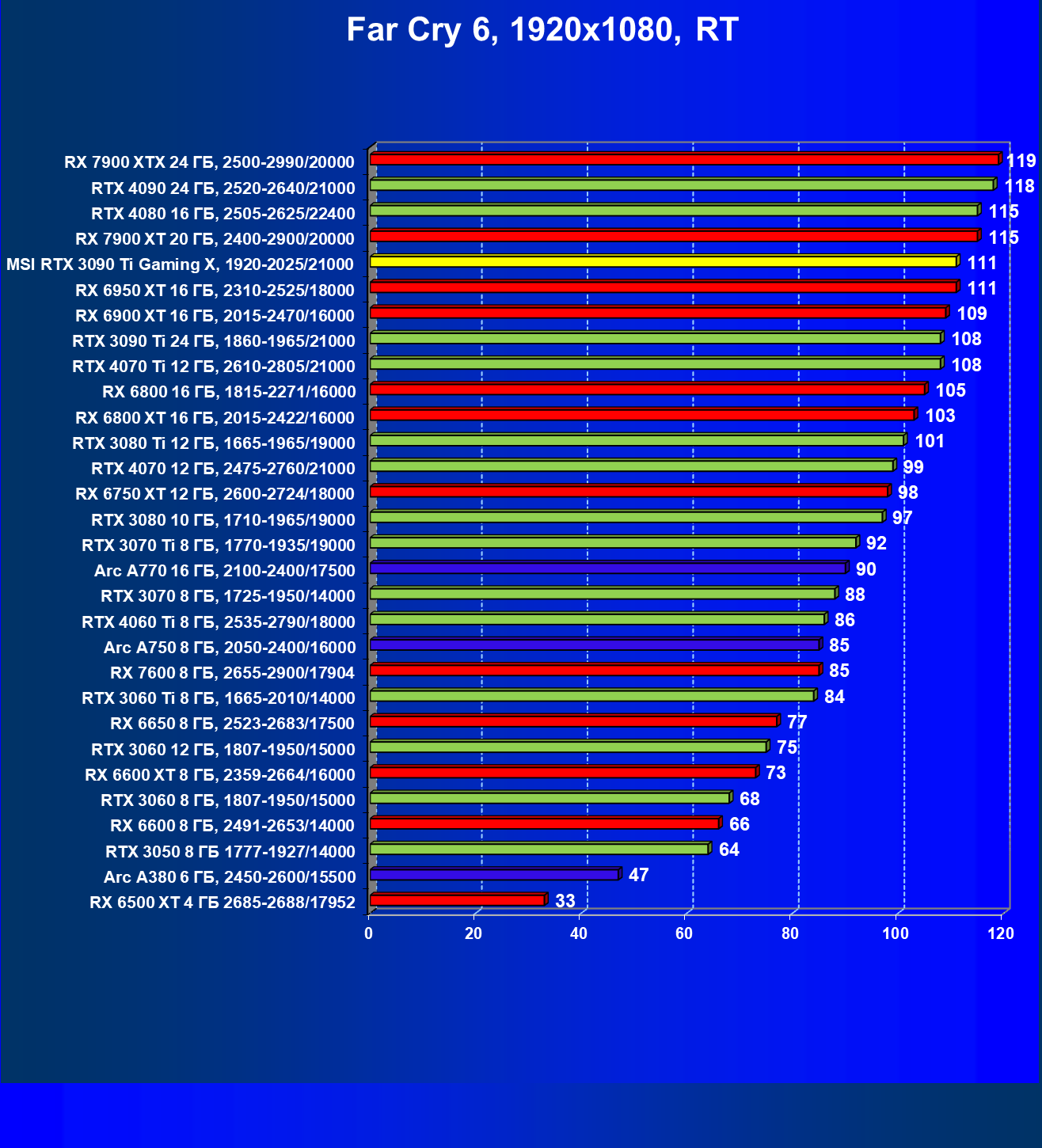 | 10 | RX 7900 XTX 24 ГБ, 2500—2990/20000 | 133 | 1224 | 92 000 |