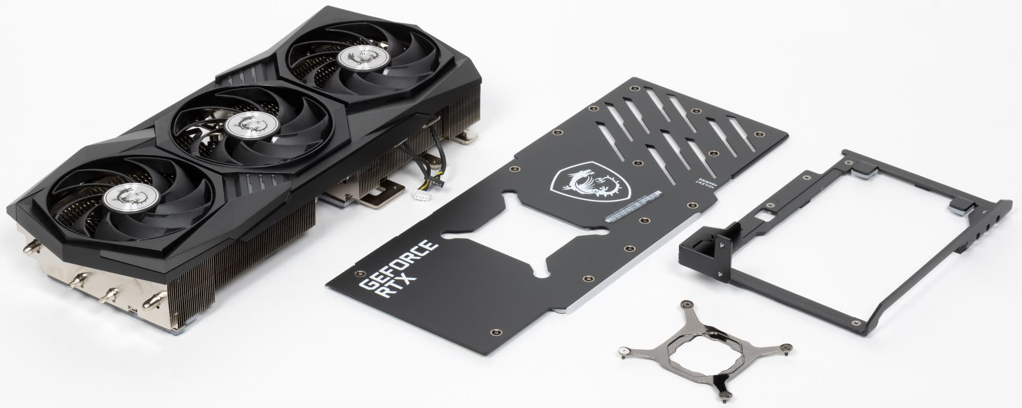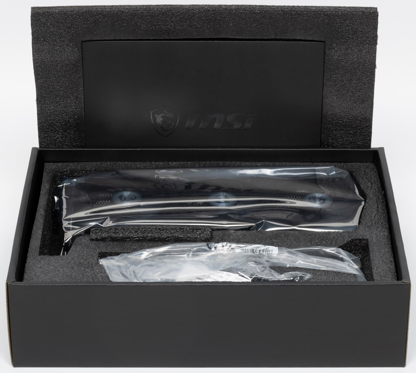Карта MSI имеет 16-контактный разъем питания версии PCIe 5.0. Хотя в комплекте поставки имеется адаптер-переходник для подключения разъемов питания типа PCIe 2.0 (с 3 таких разъемов), лучше всё же использовать блоки питания стандарта ATX 3.0 с полноценной поддержкой питания PCIe 5.0 (с кабелем 12VHPWR). Имеющийся же переходник питания ни в коем случае нельзя изгибать непосредственно после 16-контактного разъема.