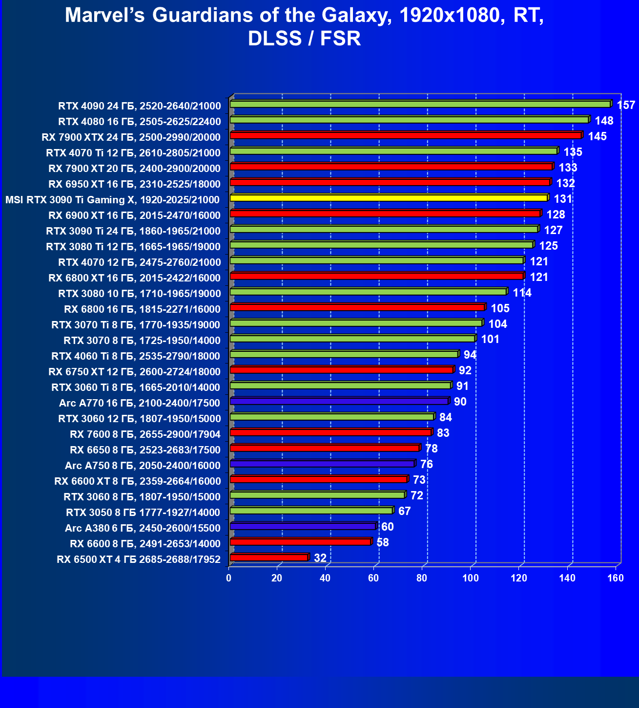 | 26 | RX 6950 XT 16 ГБ, 2310—2525/18000 | 131 | 1156 | 88 000 |