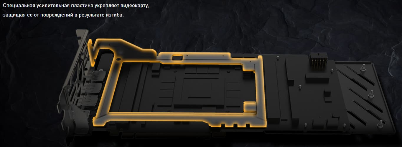 В составе СО имеется литая металлическая рама, которая не только усиливает жесткость всей конструкции карты, но и помогает в охлаждении через термопрокладки.