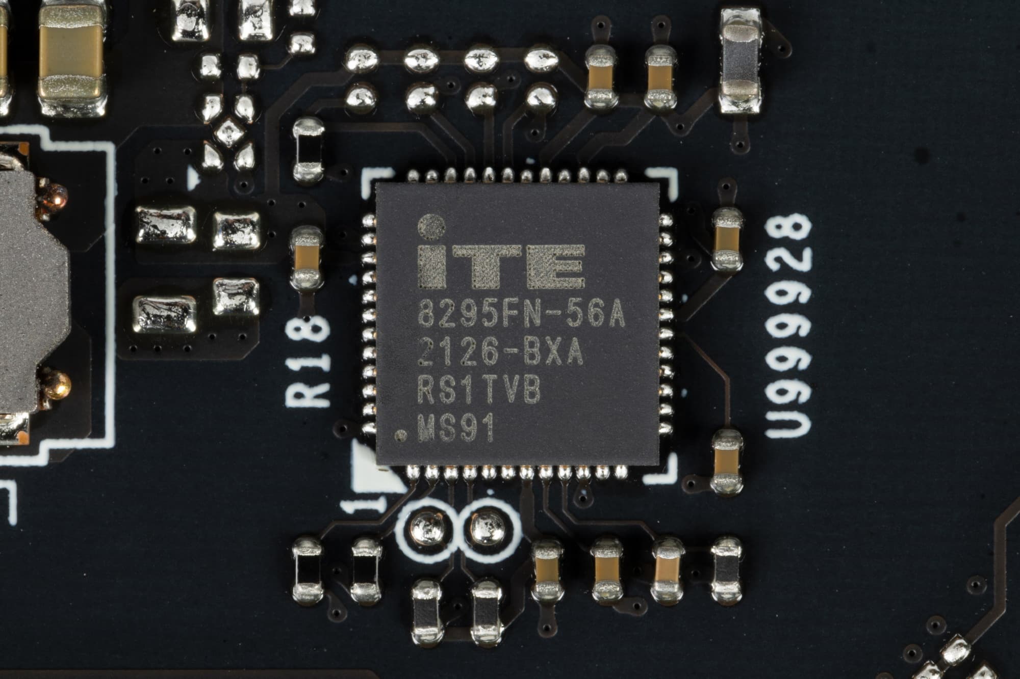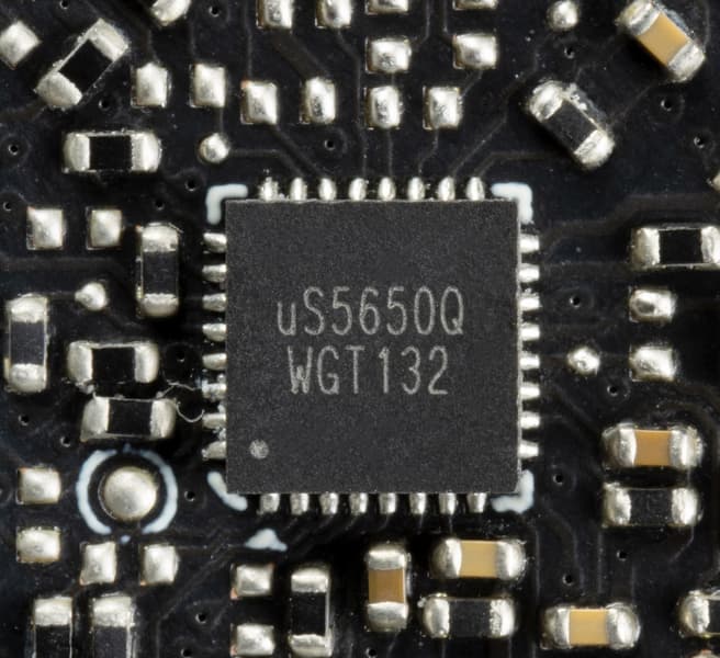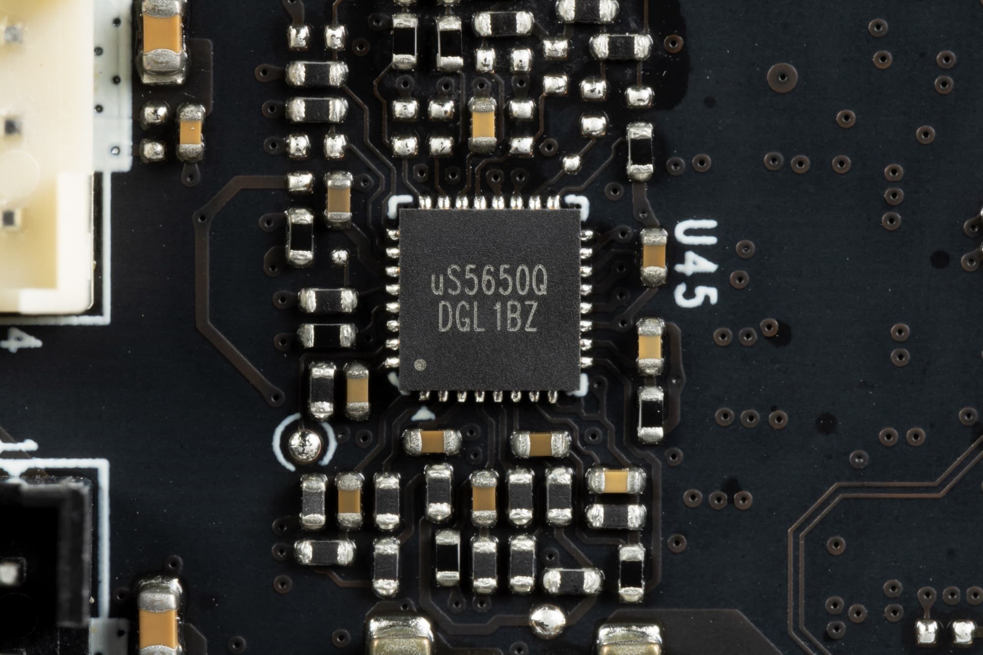На обеих сторонах платы имеется по одному контроллеру uS5650Q (uPI Semiconductor), которые отвечают за мониторинг карты (отслеживание напряжений и температуры).