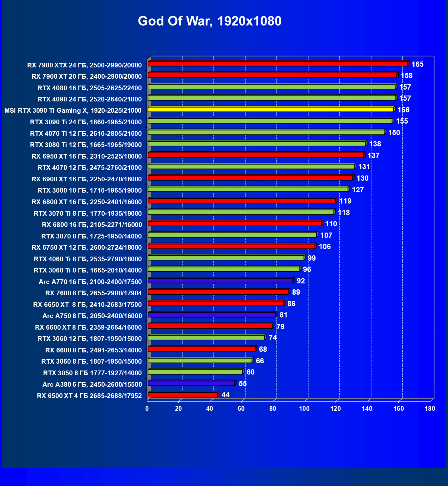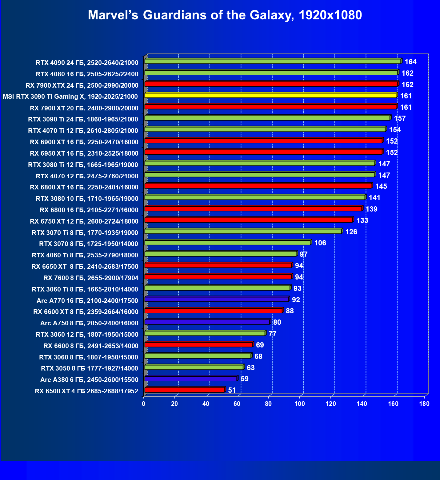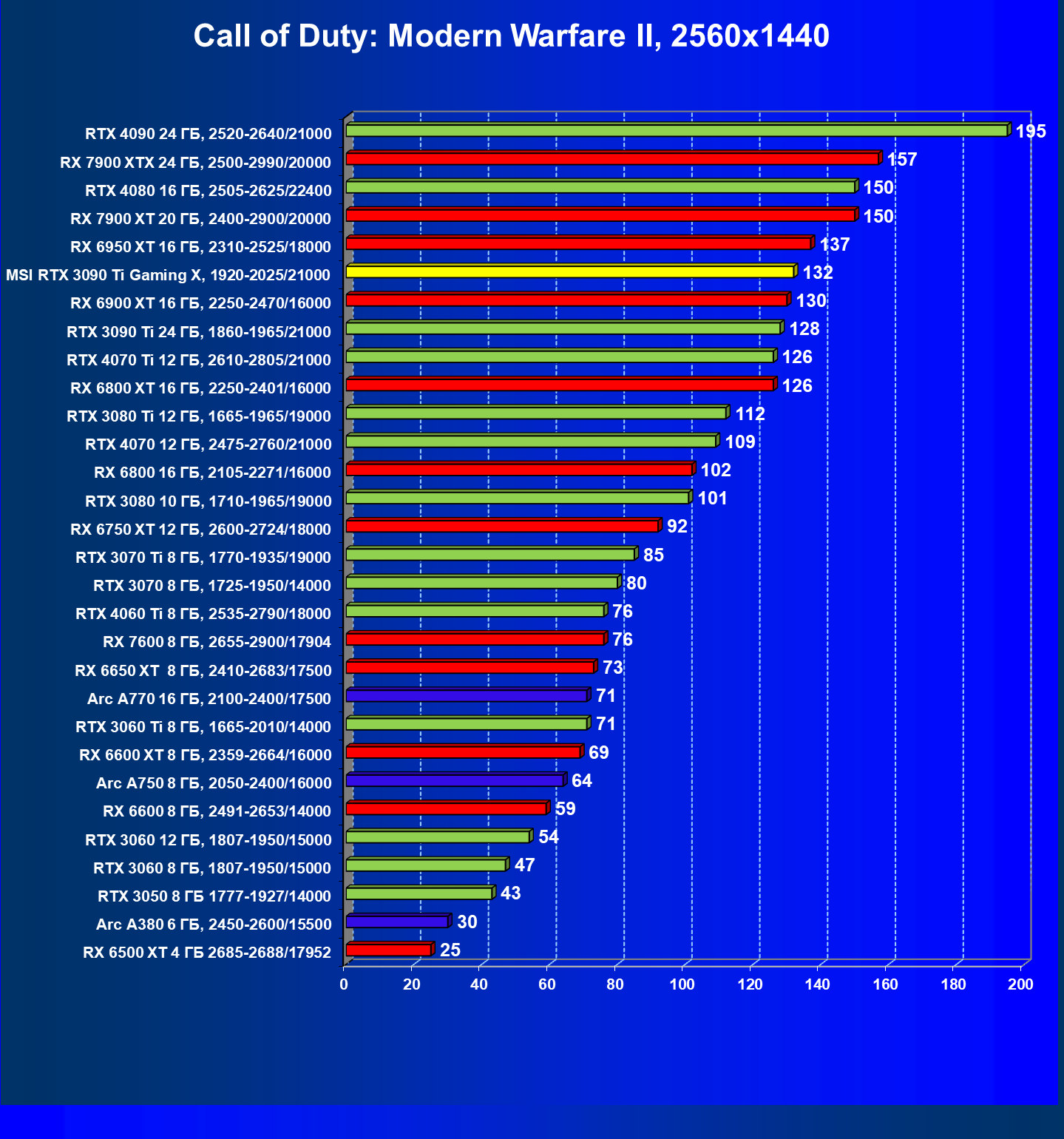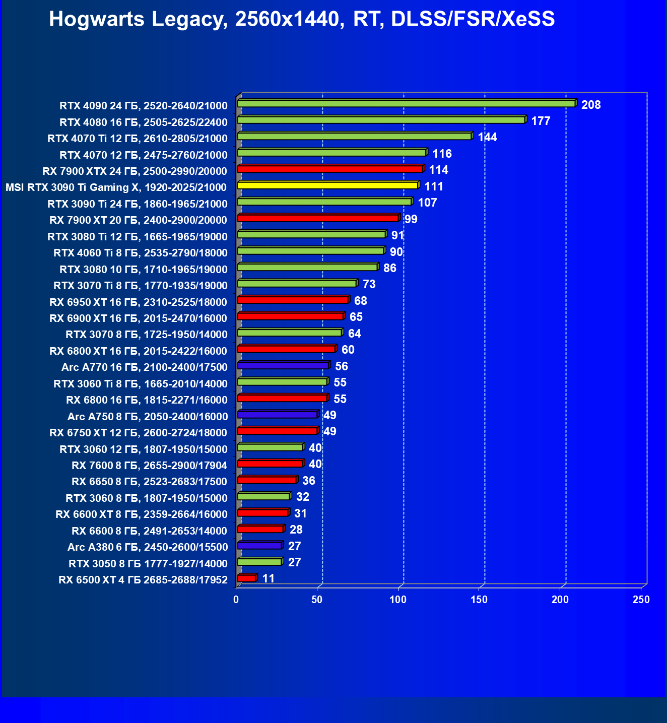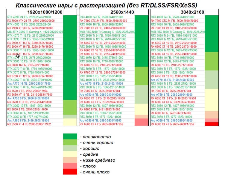 | 14 | RX 7900 XTX 24 ГБ, 2500—2990/20000 | 178 | 1636 | 92 000 |