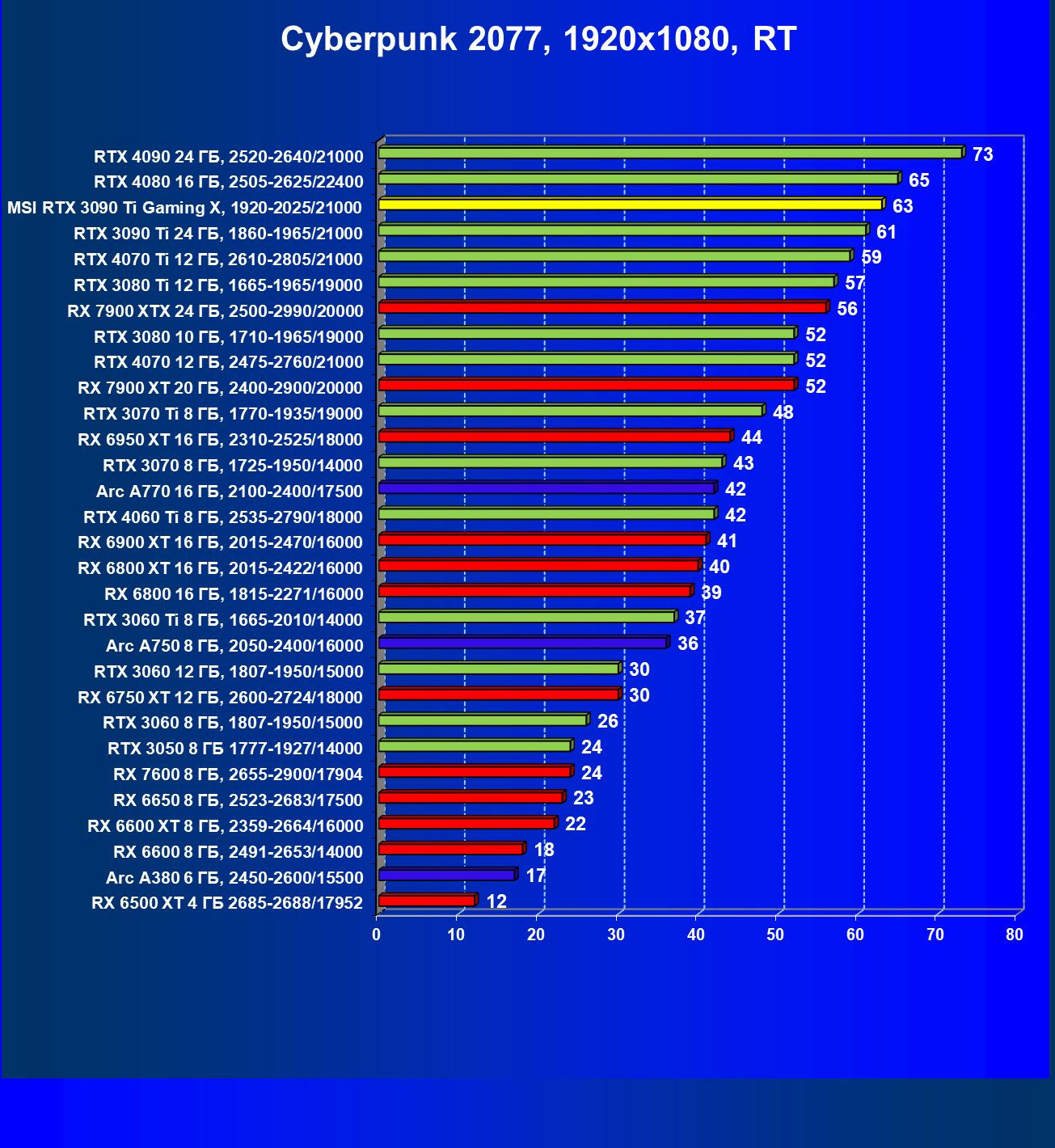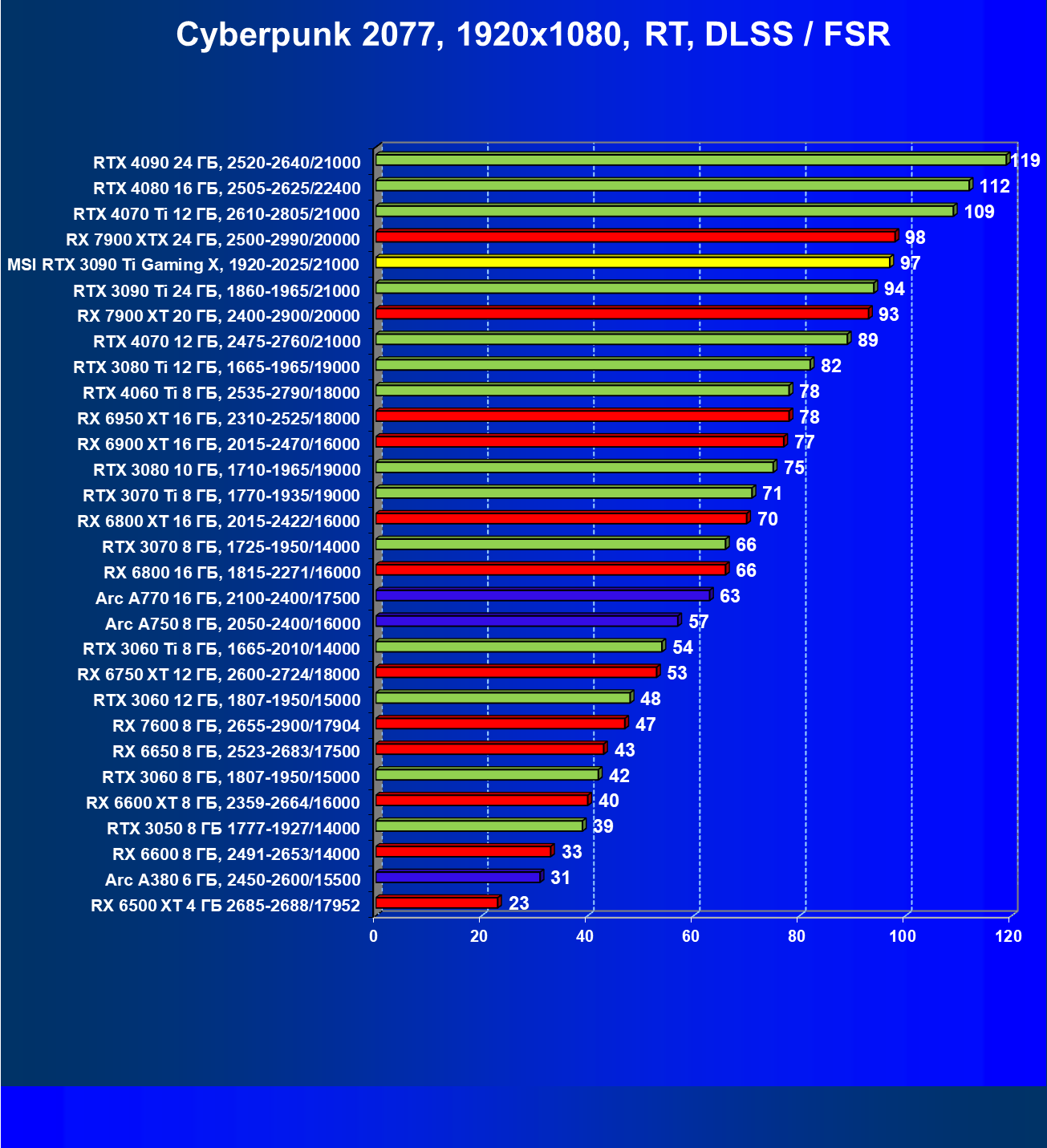 | 05 | MSI RTX 3090 Ti Gaming X, 1920—2025/21000 | 991 | 82 | 121 000 |