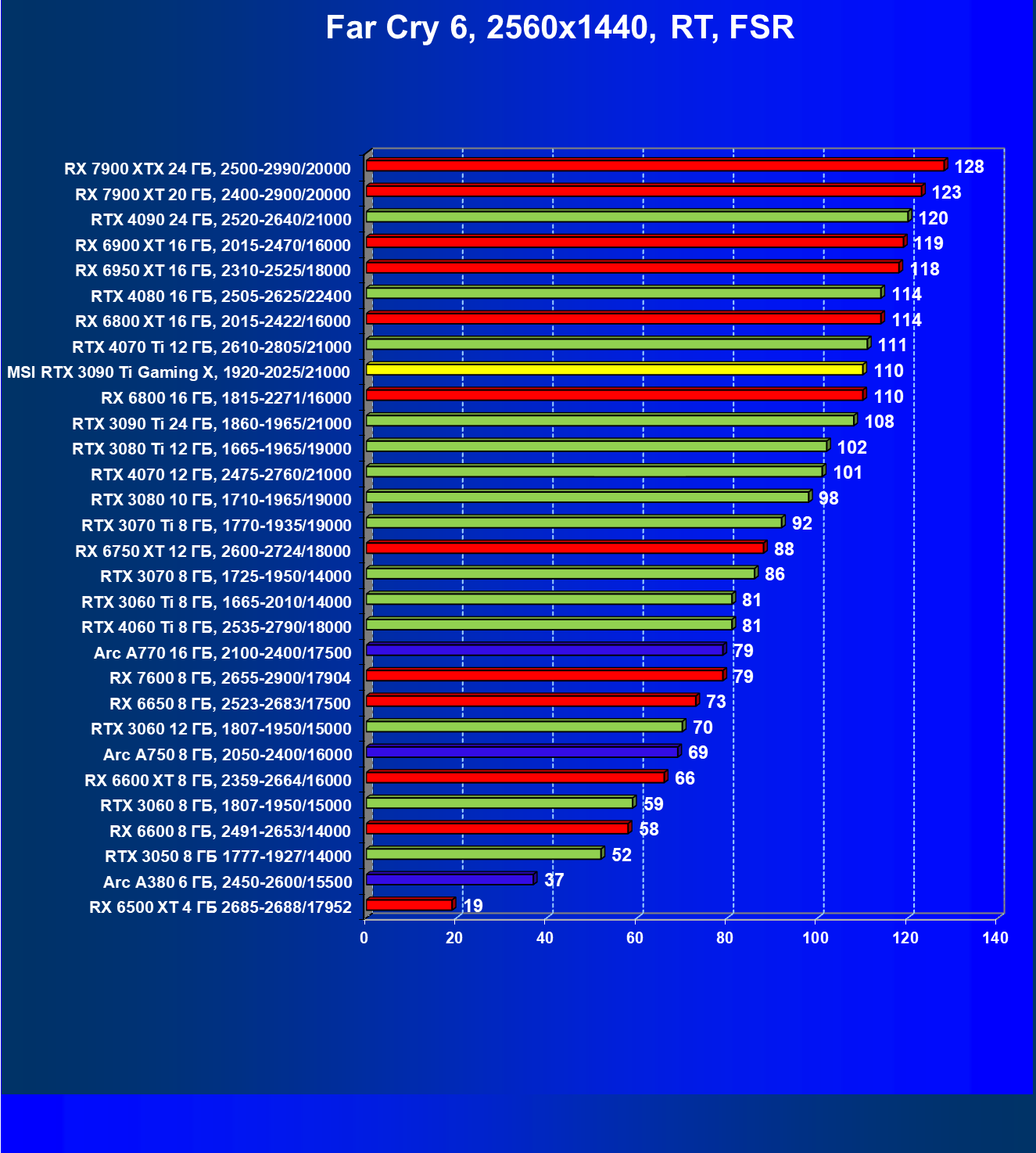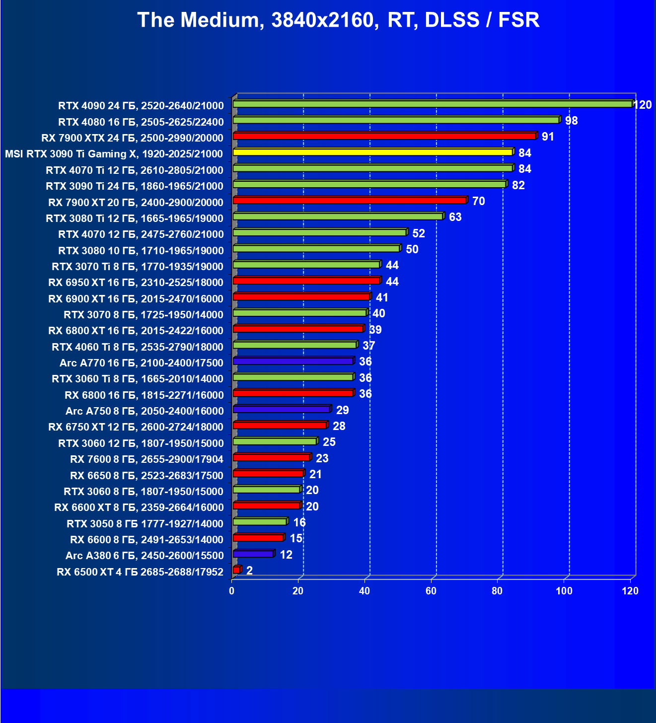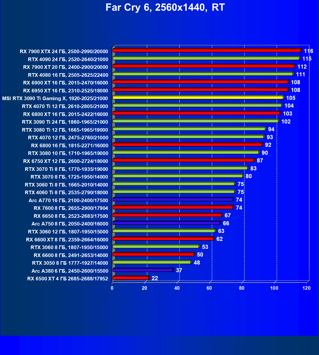 | 24 | RX 6950 XT 16 ГБ, 2310—2525/18000 | 102 | 901 | 88 000 |
