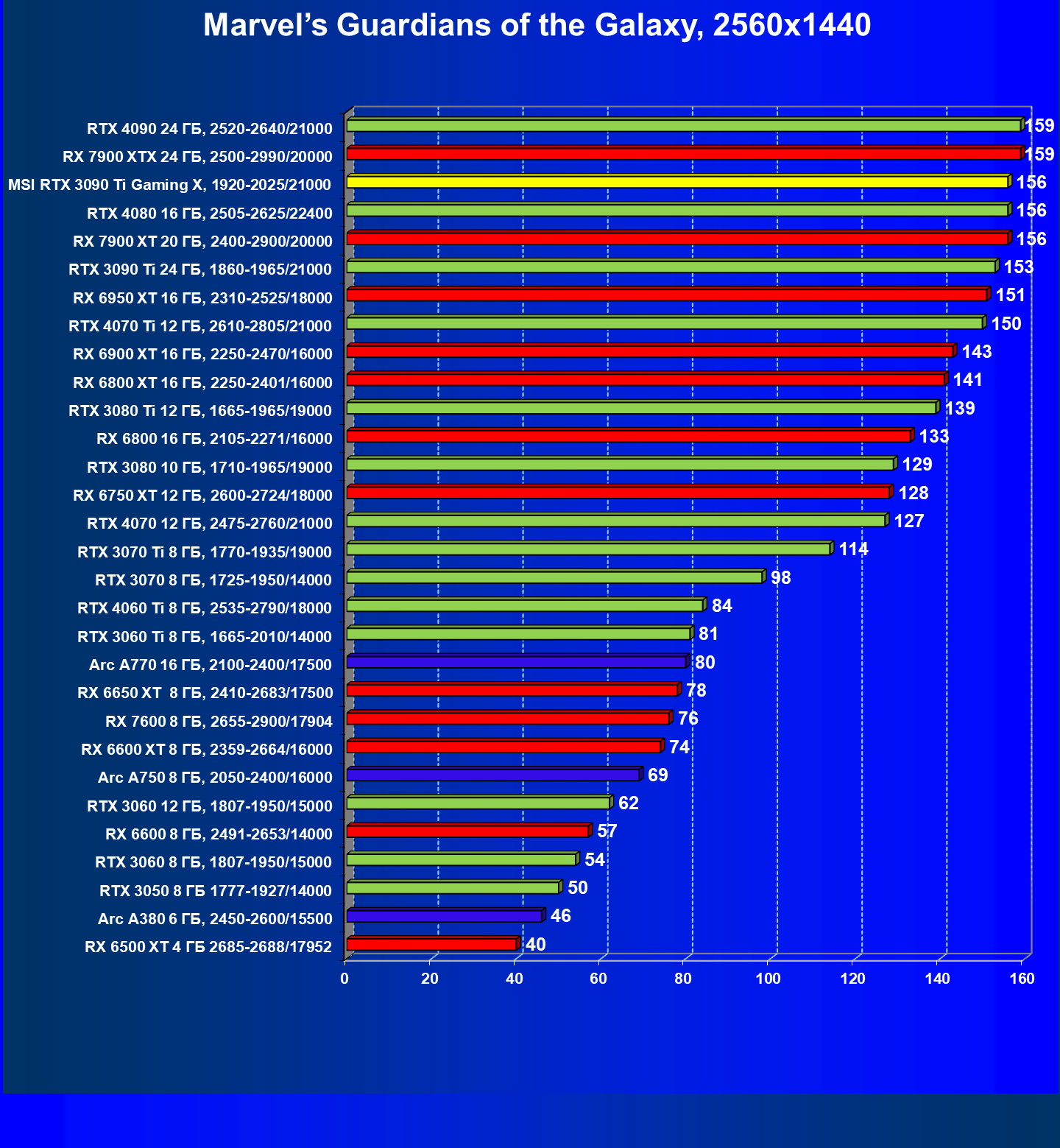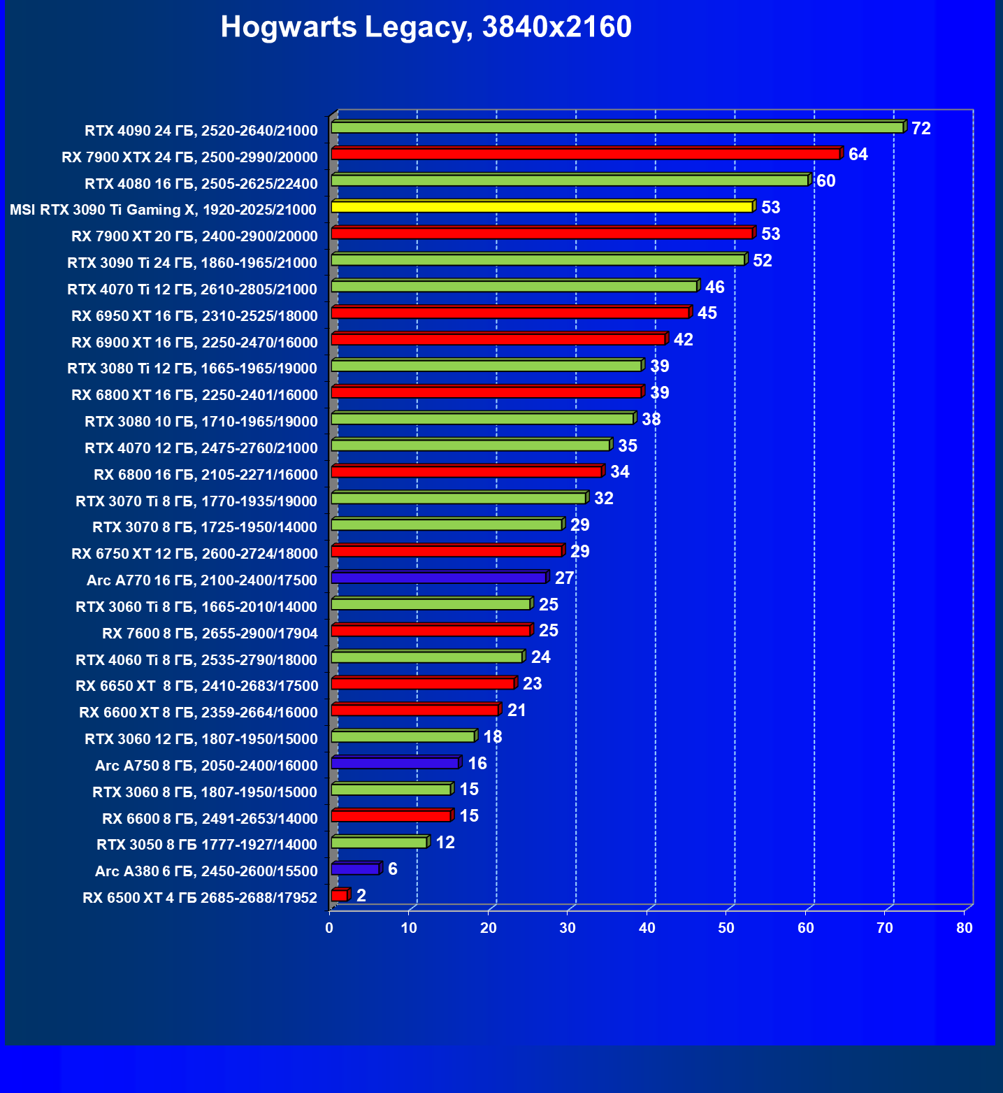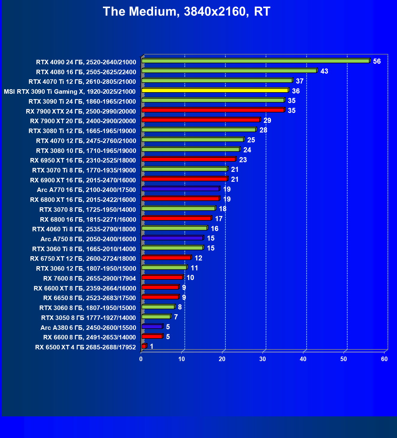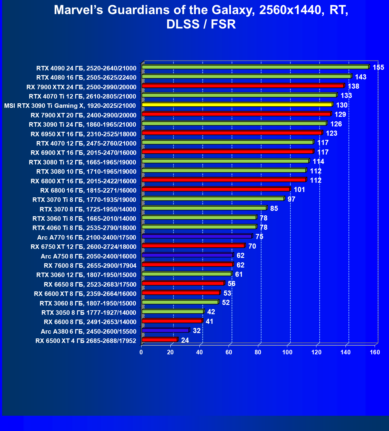| 24 | RX 6950 XT 16 ГБ, 2310—2525/18000 | 102 | 901 | 88 000 |