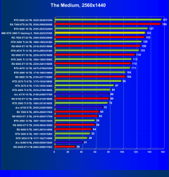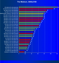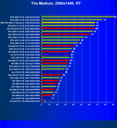 - Стандартные результаты тестов без использования аппаратной трассировки лучей в разрешениях 1920×1080, 2560×1440 и 3840×2160