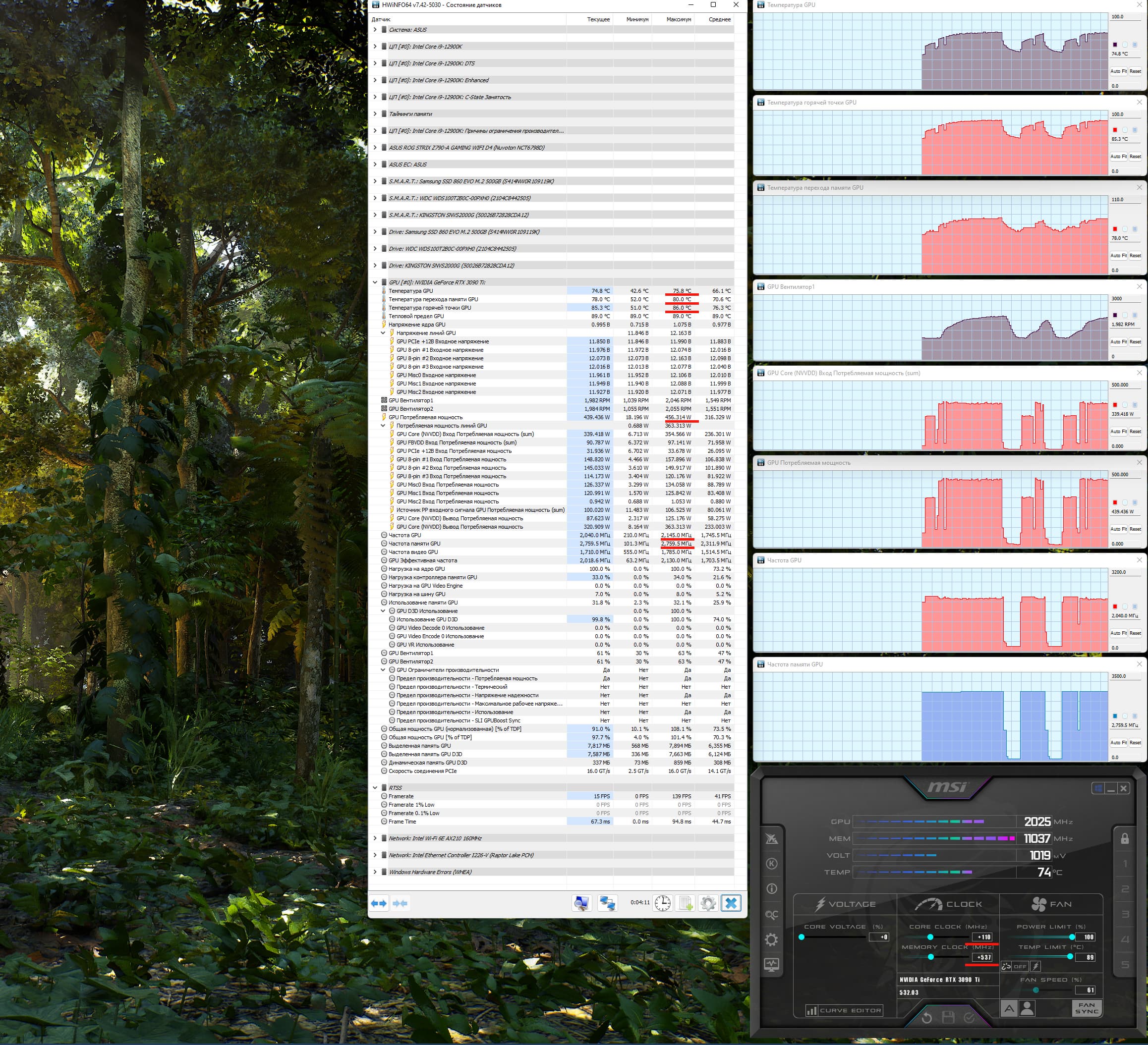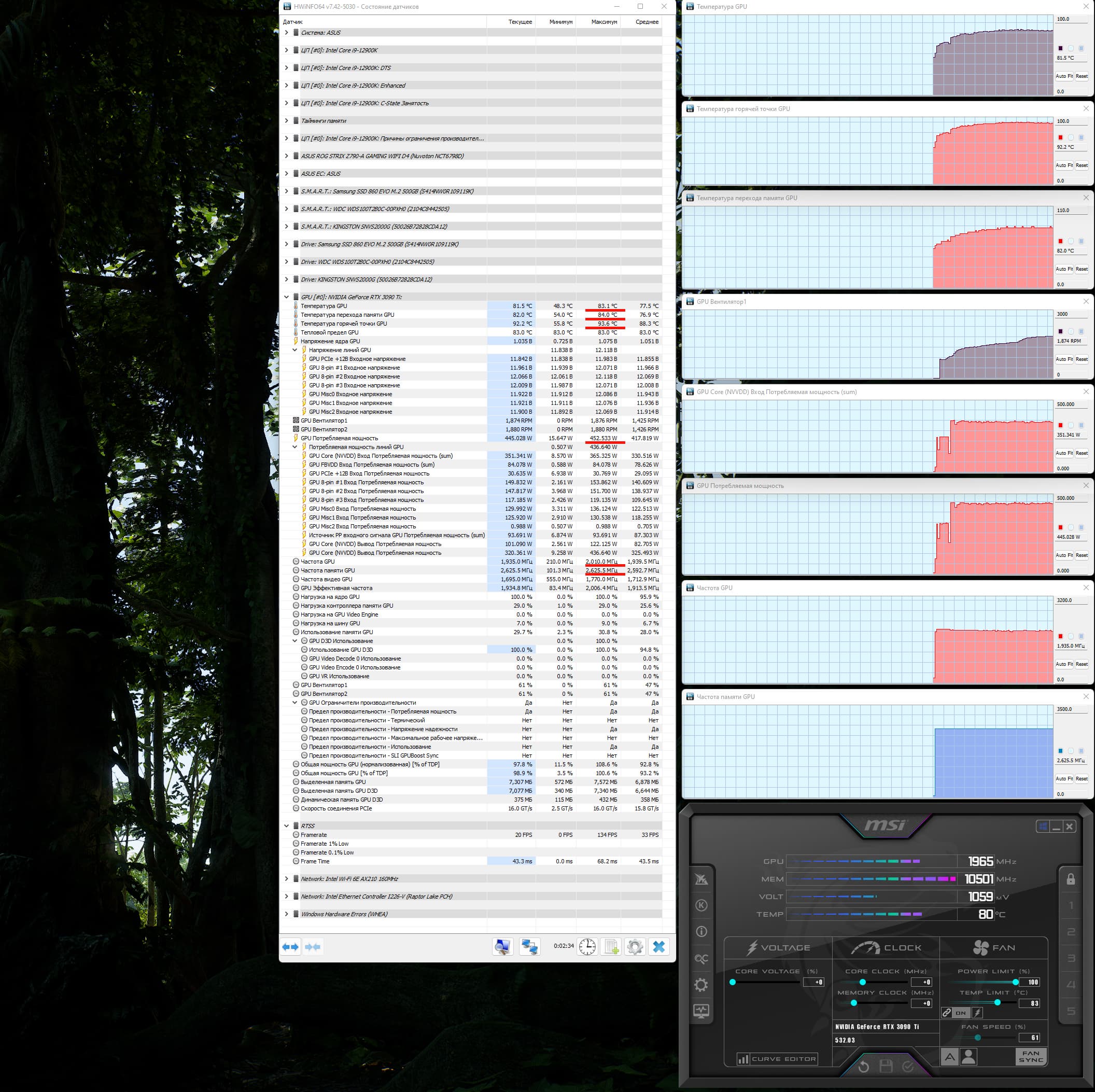 | 28 | MSI RTX 3090 Ti Gaming X, 1920—2025/21000 | 82 | 991 | 121 000 |