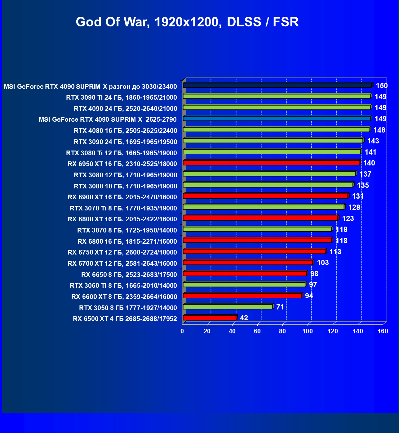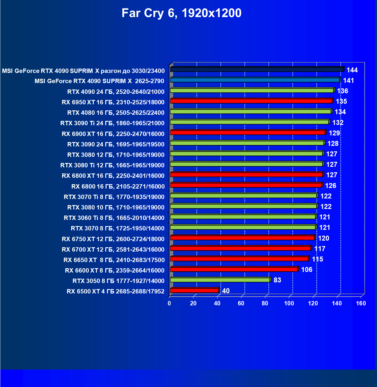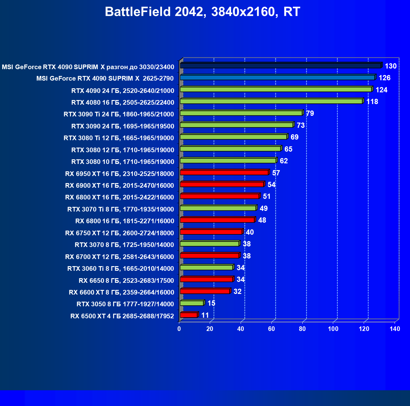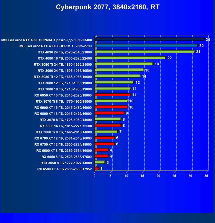 | 01 | MSI GeForce RTX 4090 Suprim Х 24 ГБ, разгон до 2925/23400 | 592 | 33 | 180 000 |