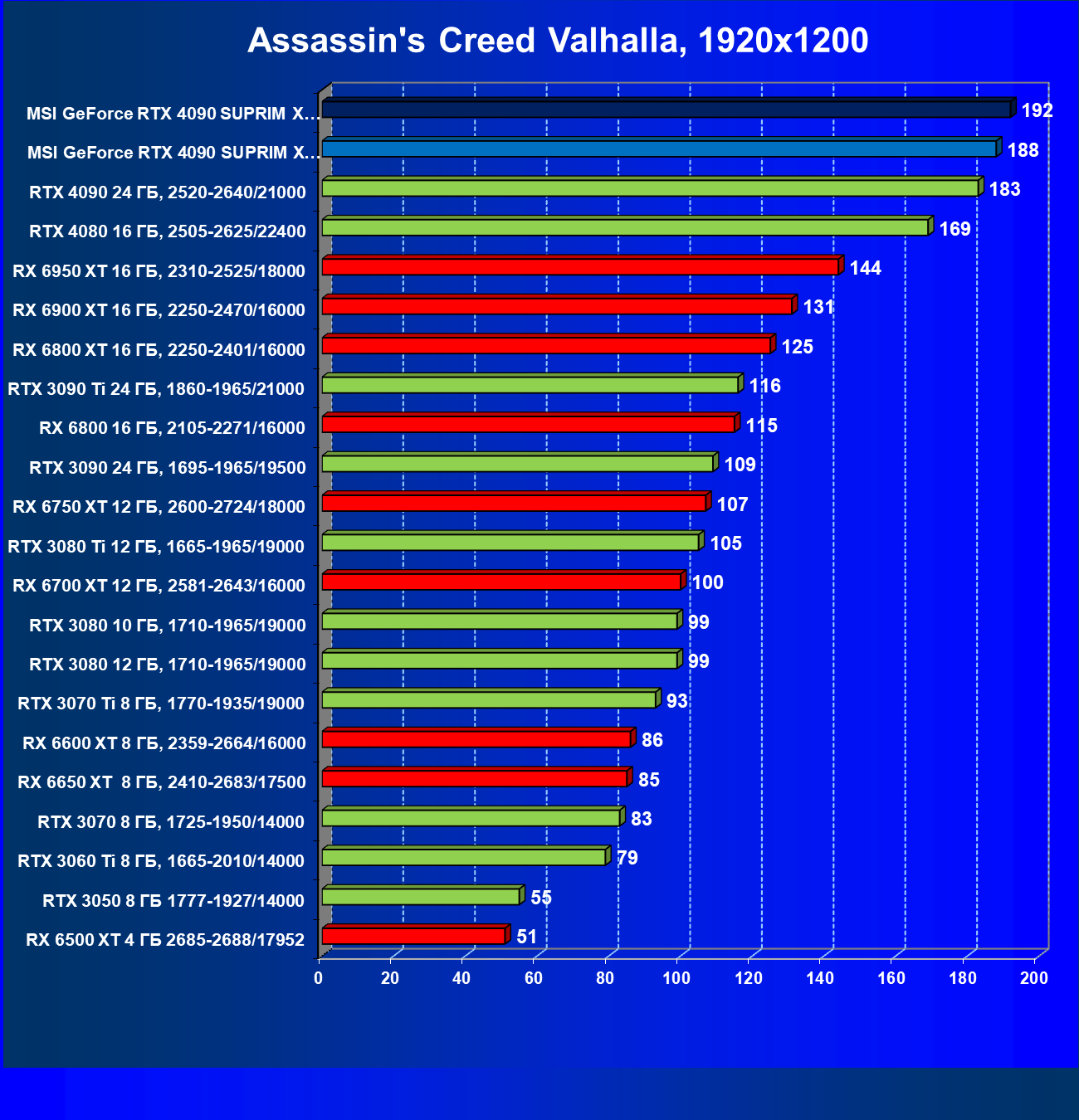 | 21 | MSI GeForce RTX 4090 Suprim X 24 ГБ, 2625—2790/21000 | 54 | 976 | 180 000 |