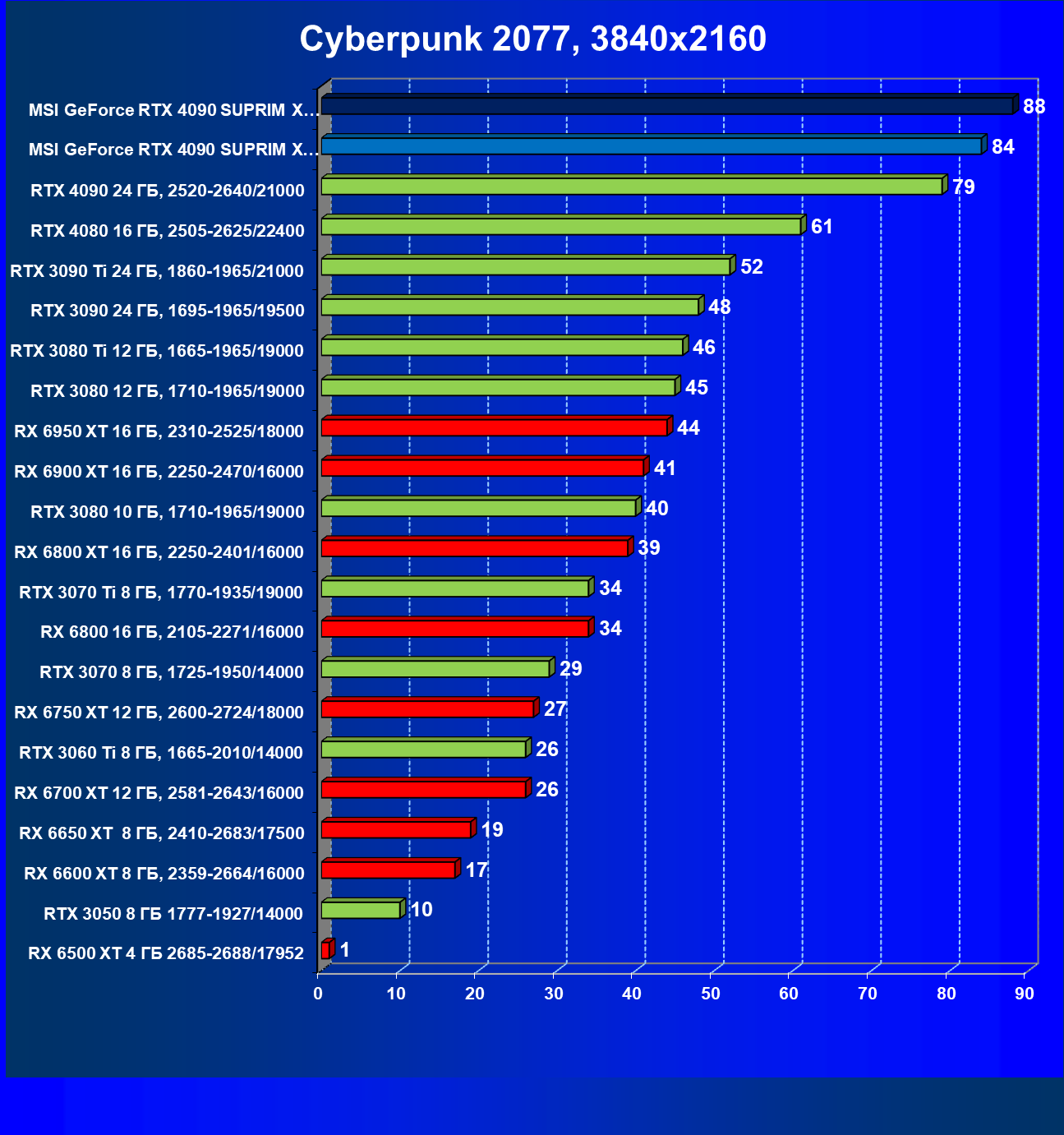 | 01 | MSI GeForce RTX 4090 Suprim X 24 ГБ, разгон до 2925/23400 | 1001 | 56 | 180 000 |