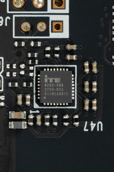 Также на тыльной стороне карты имеется контроллер uS5650Q (uPI Semi), который отвечает за мониторинг карты (отслеживание напряжений и температуры).
