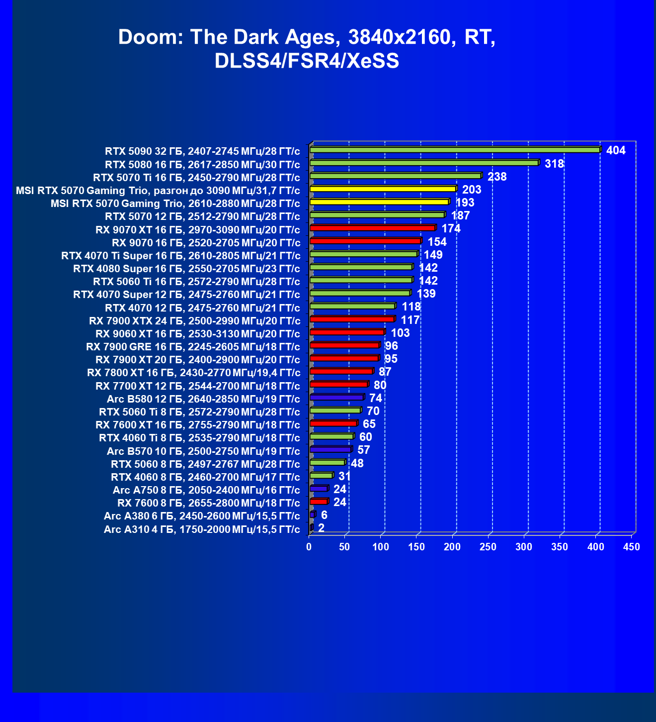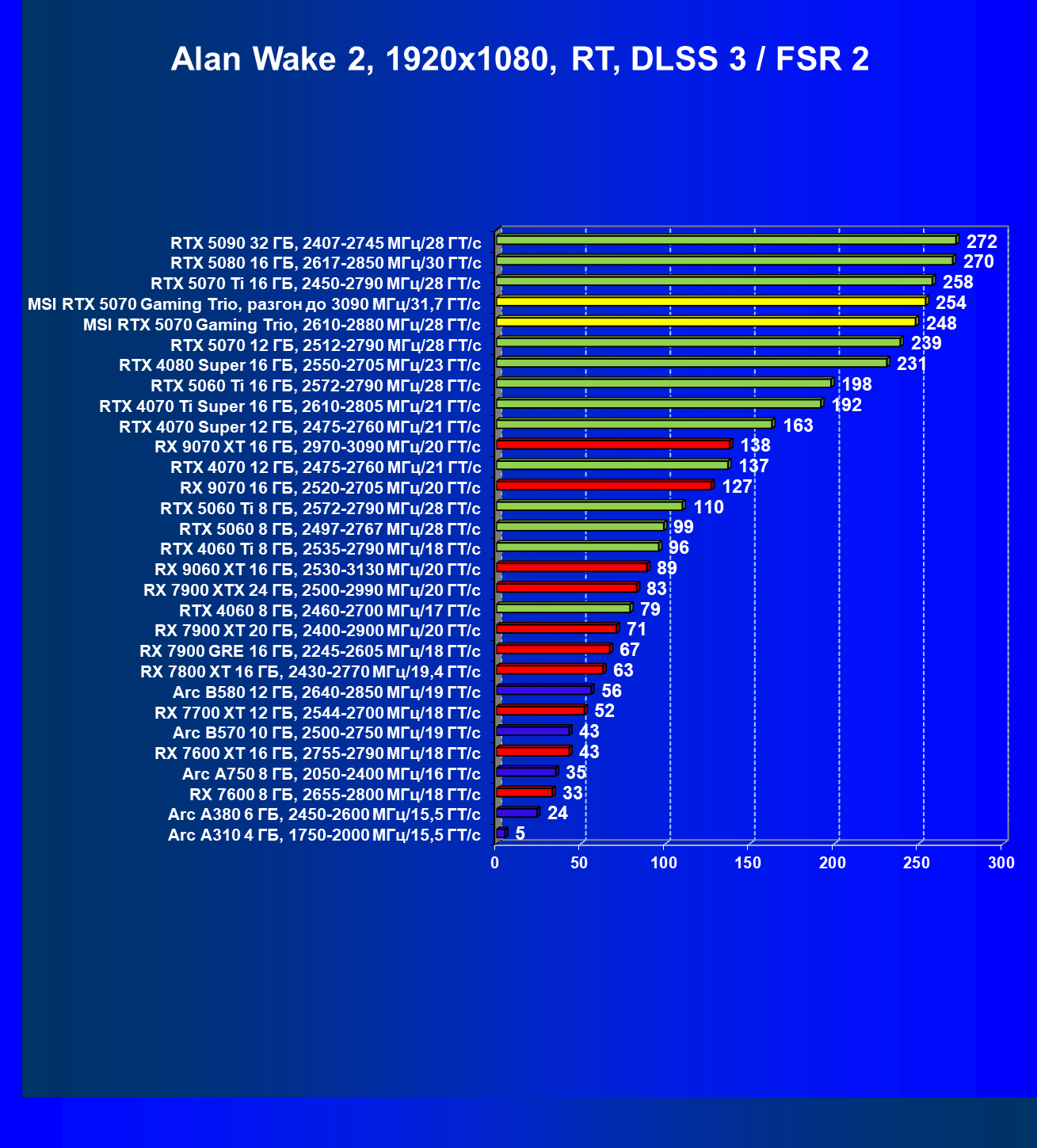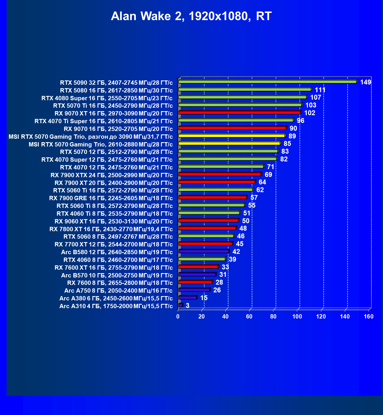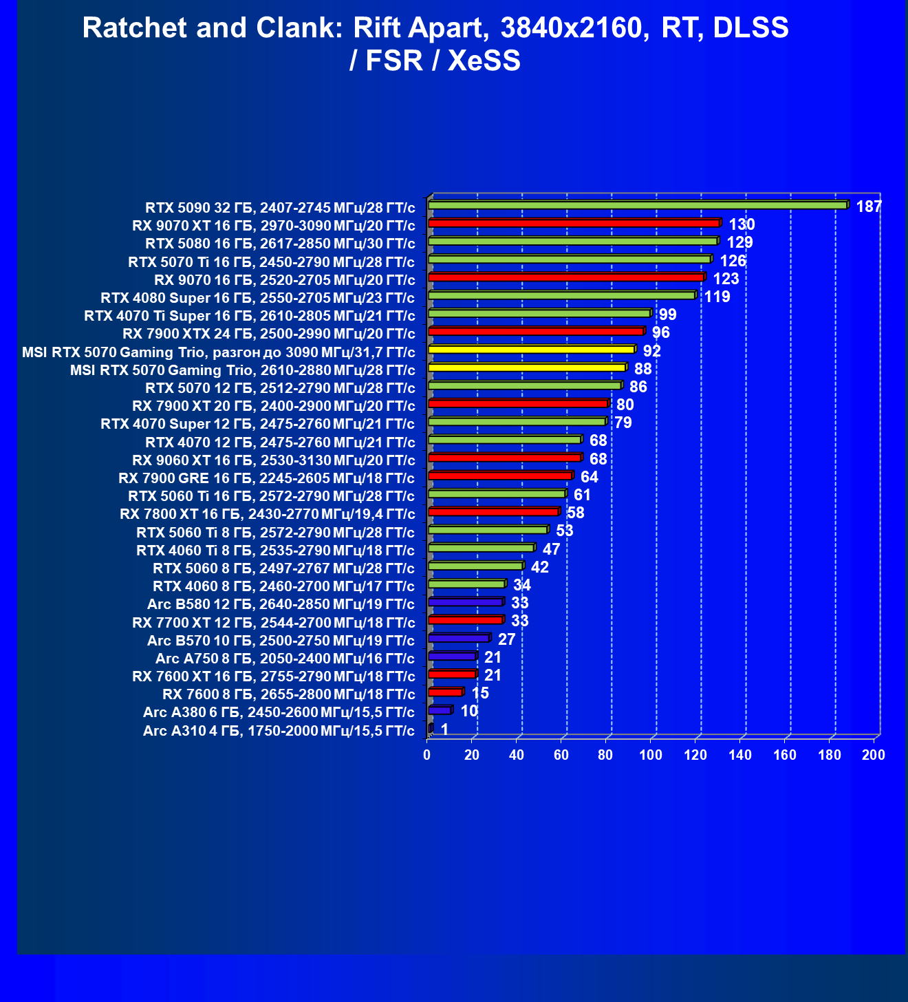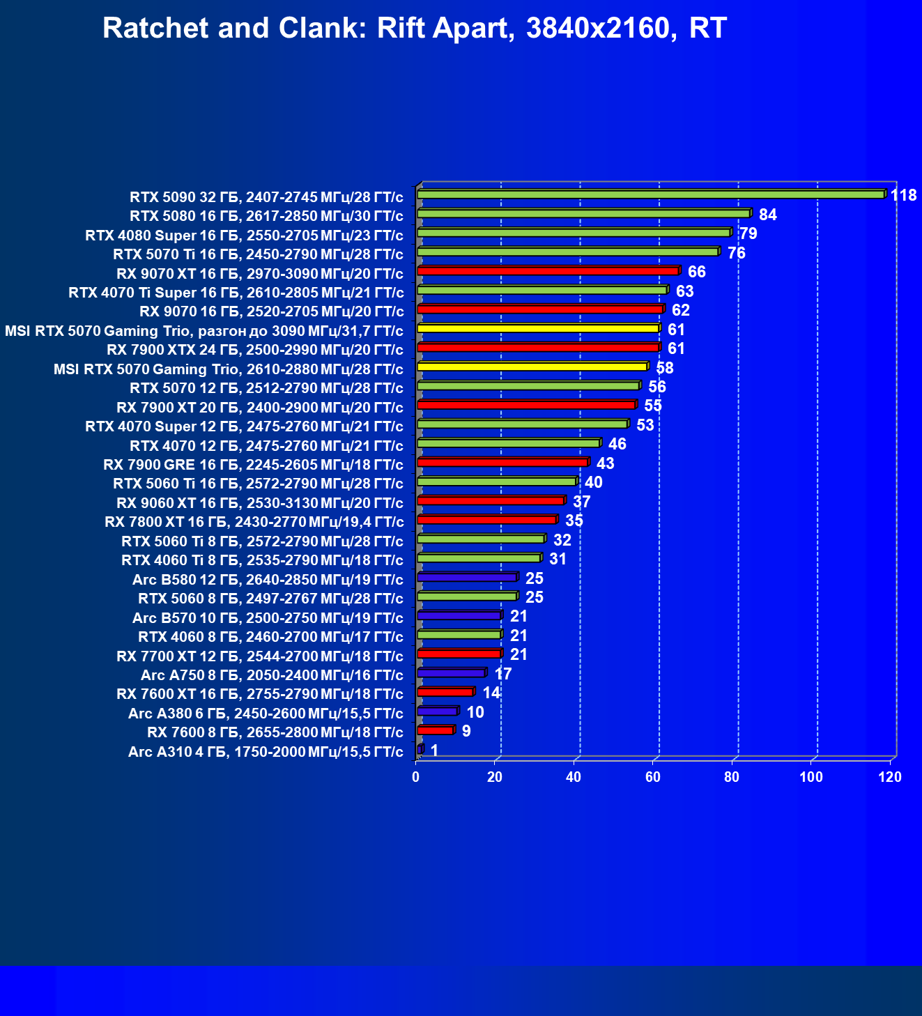 | 07 | RX 9070 16 ГБ, 2520—2705 МГц/20 ГТ/с | 2088 | 316 | 66 000 |