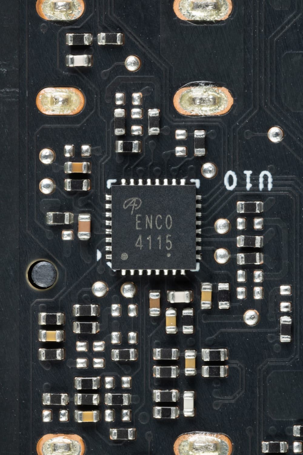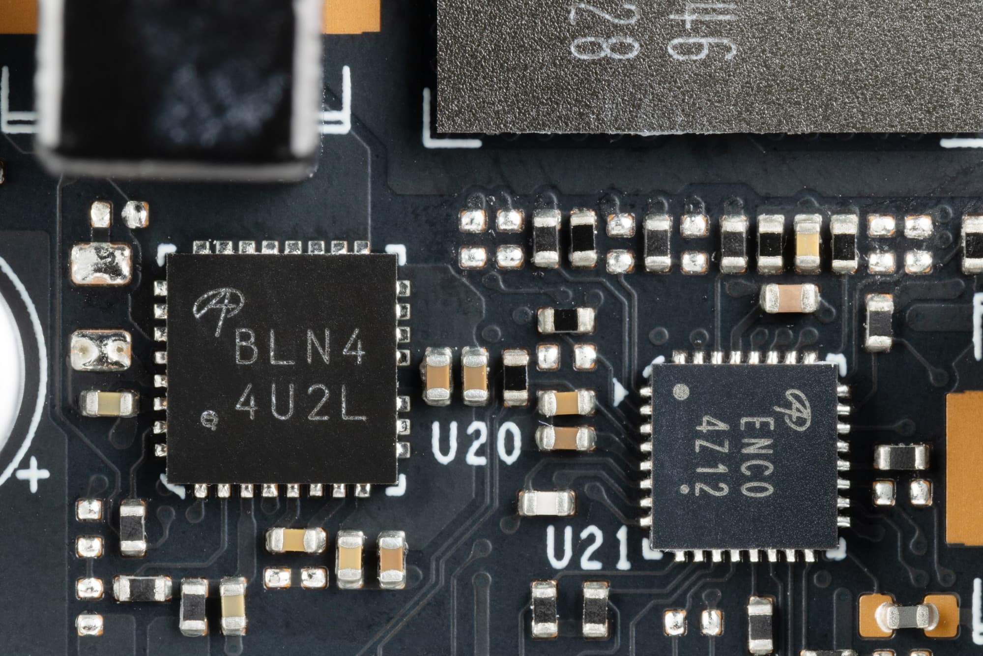 10 фазами питания ядра управляет ШИМ-контроллер AOZ71031QI (Alpha&Omega Semiconductor). Он рассчитан максимум на 10 фаз и расположен на тыльной стороне платы.