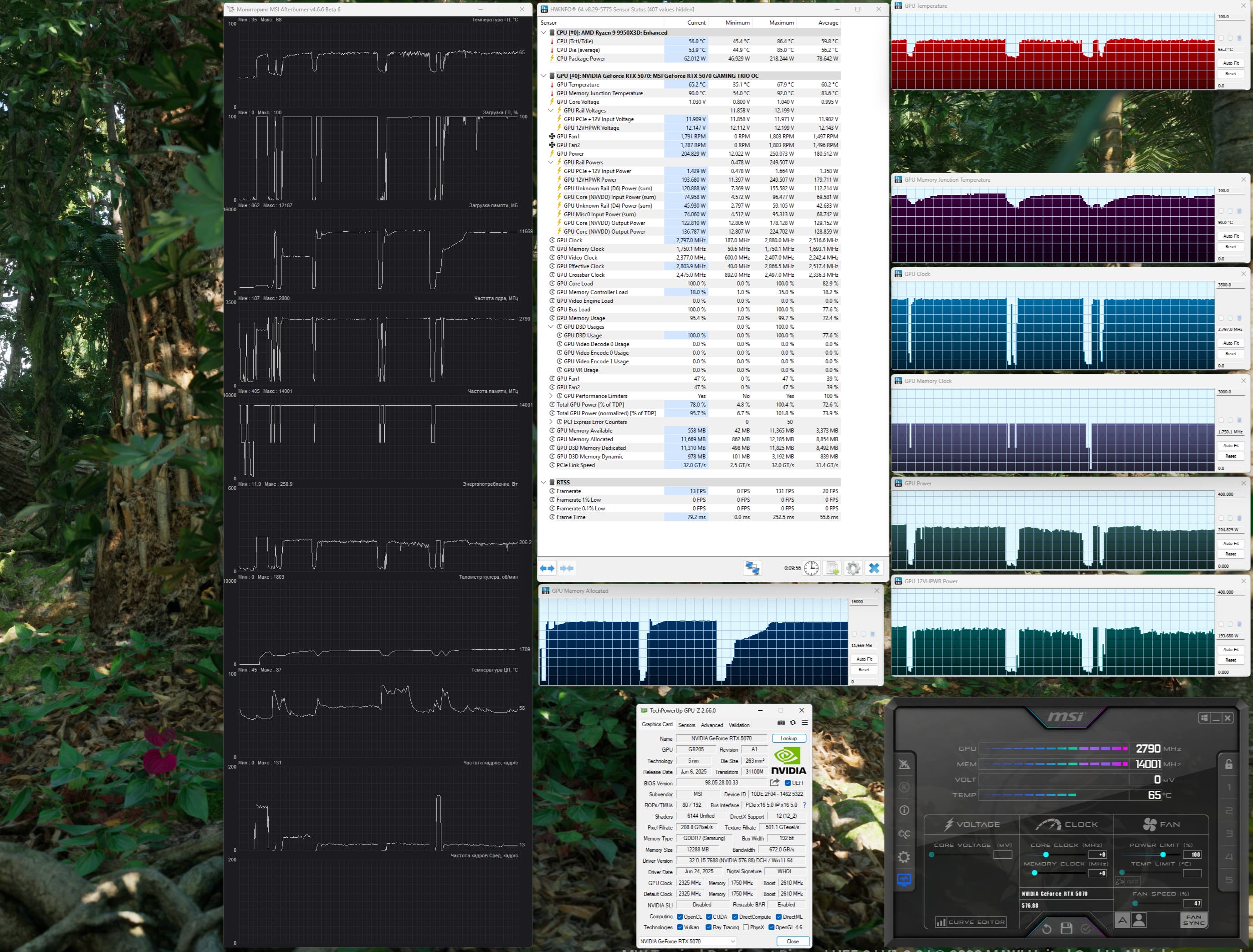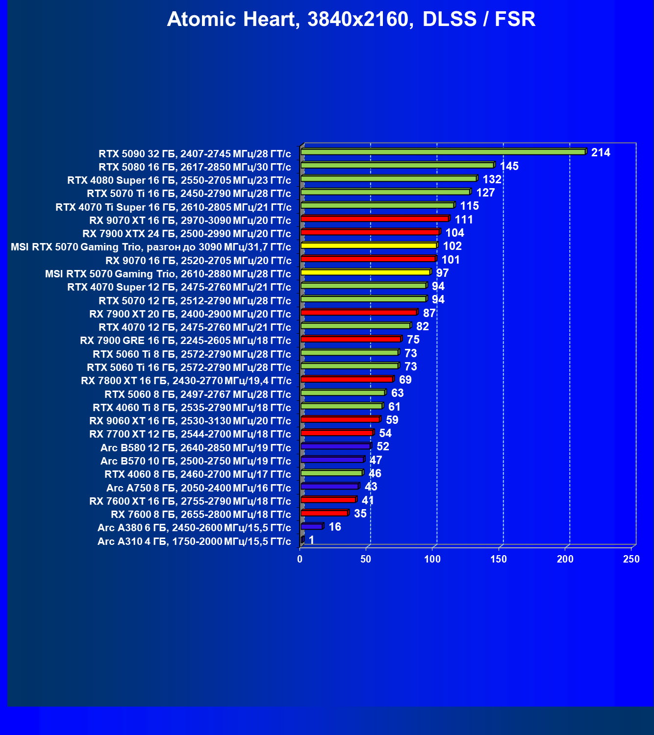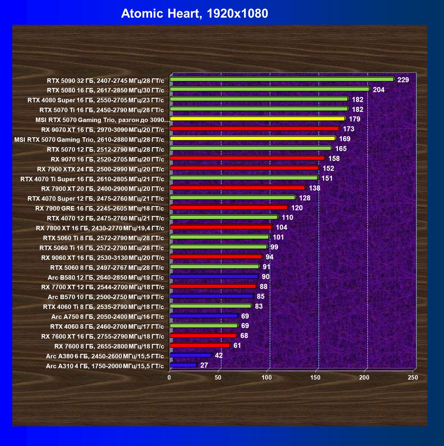 | 07 | MSI RTX 5070 Gaming Trio, 2610—2880 МГц/28 ГТ/с | 314 | 1912 | 61 000 |