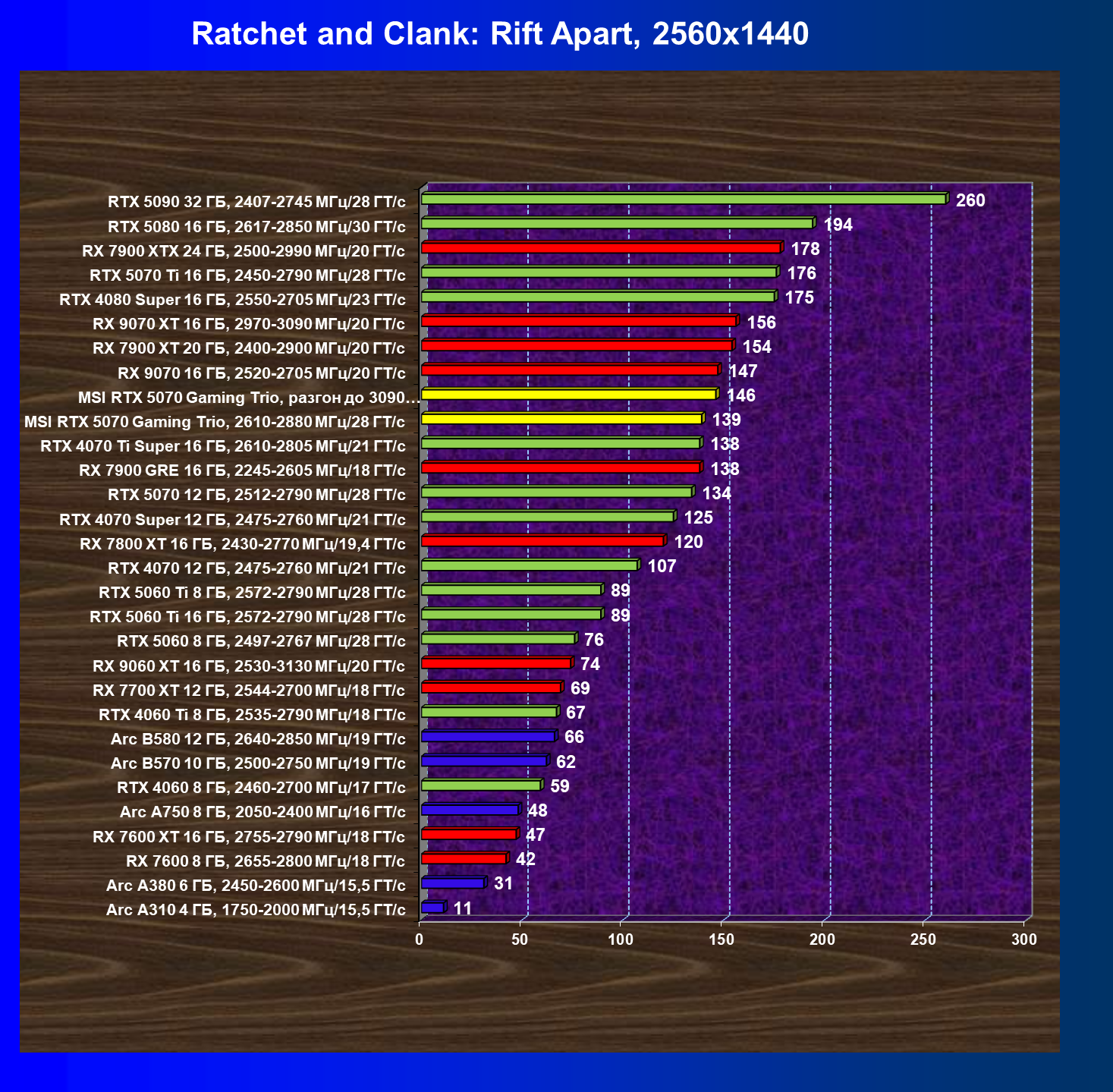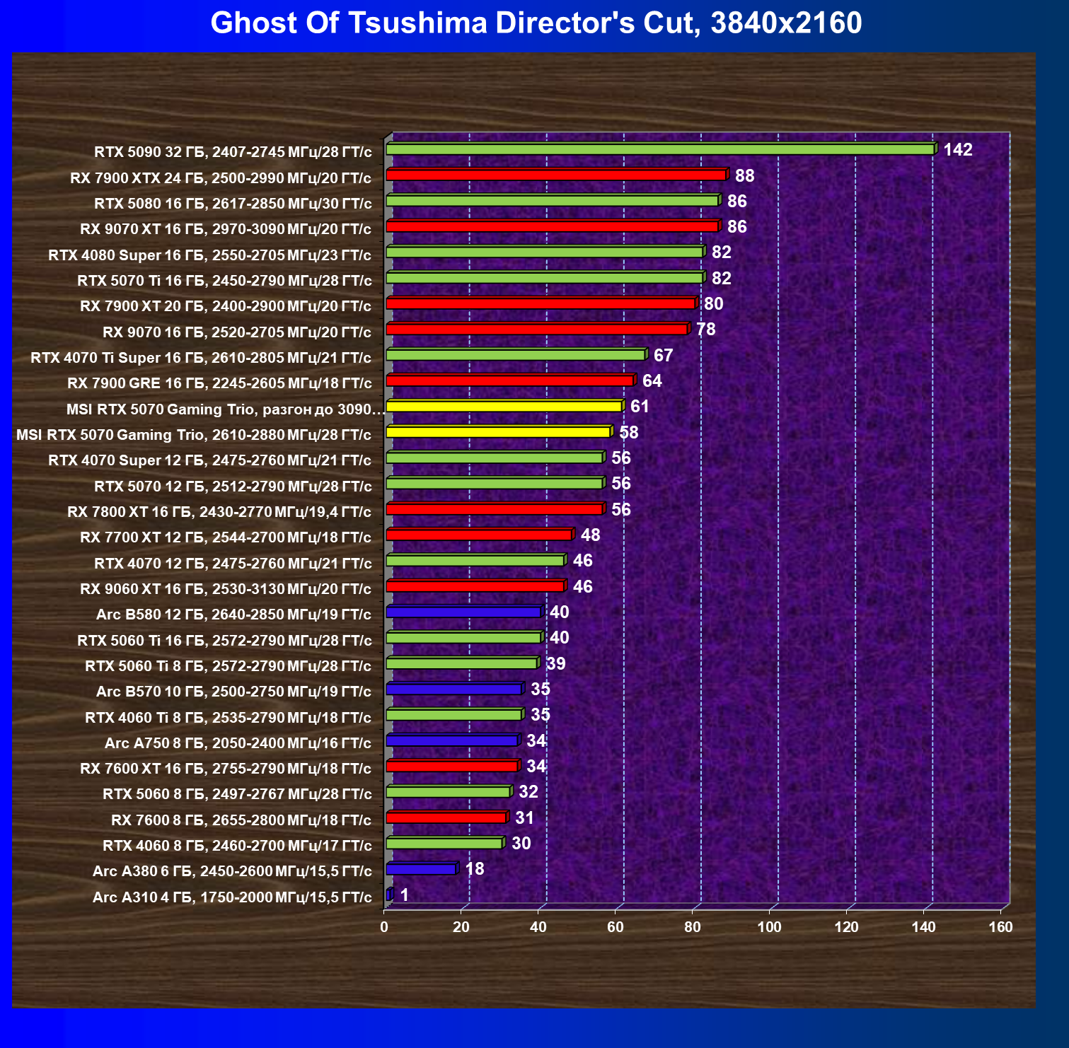 | 05 | MSI RTX 5070 Gaming Trio, разгон до 3090 МГц/31,7 ГТ/с | 5246 | 860 | 61 000 |