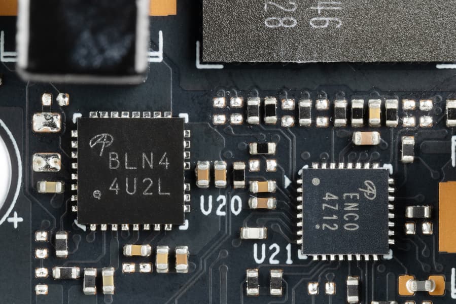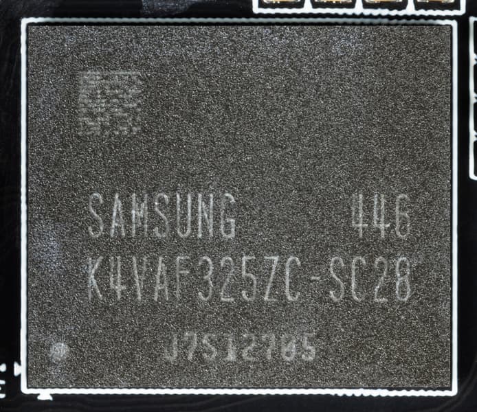 Питанием микросхем памяти управляет такой же ШИМ-контроллер A&O — AOZ71031QI. Он расположен на лицевой стороне платы.