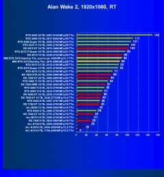 | 22 | RX 7700 XT 12 ГБ, 2544—2700 МГц/18 ГТ/с | 225 | 1214 | 54 000 |