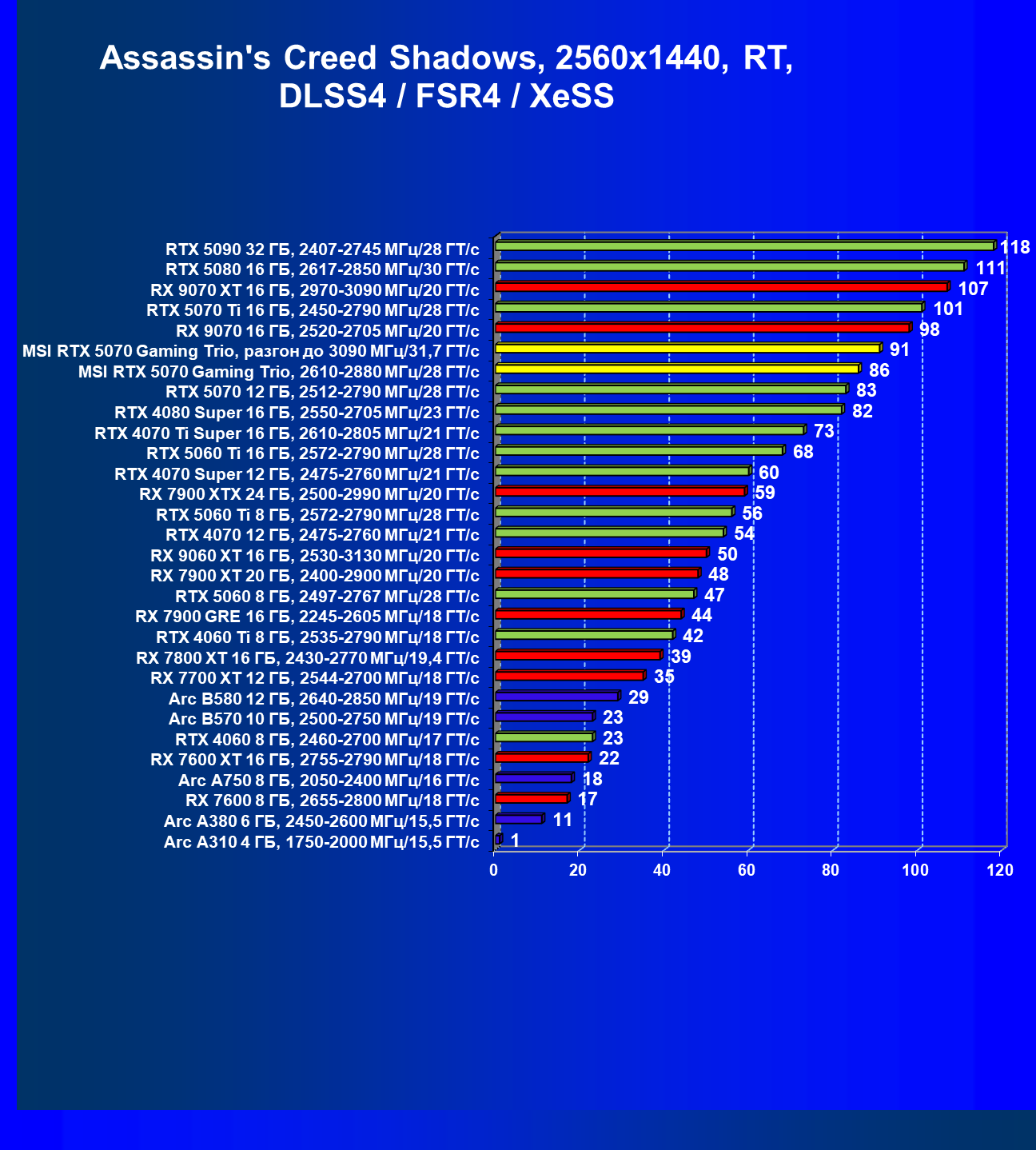 | 04 | RX 9070 16 ГБ, 2520—2705 МГц/20 ГТ/с | 316 | 2088 | 66 000 |