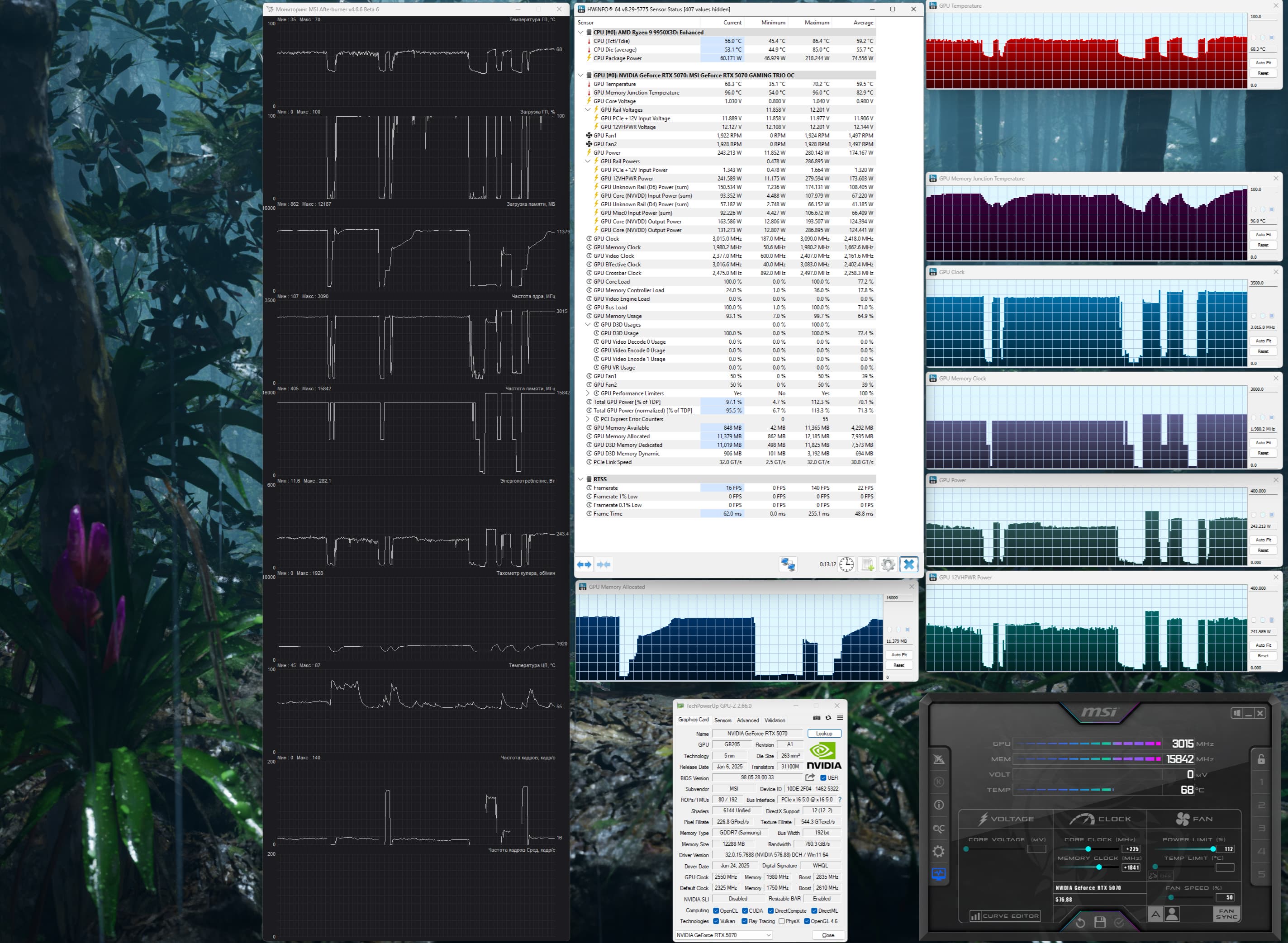 | 01 | MSI RTX 5070 Gaming Trio, разгон до 3090 МГц/31,7 ГТ/с | 860 | 5246 | 61 000 |