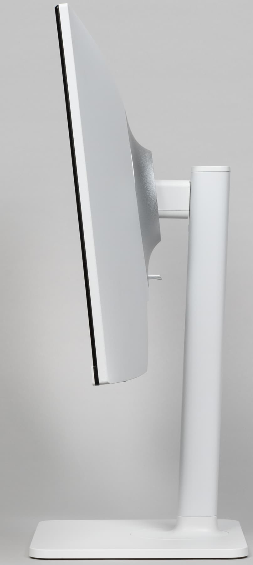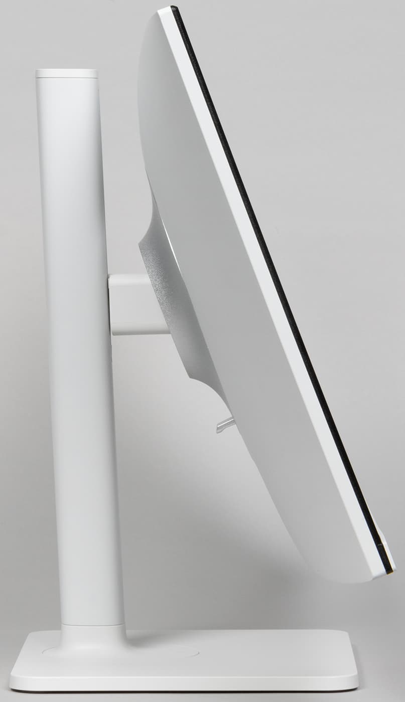 Стойка имеет фиксированную высоту, но подпираемый пружиной механизм со стальным рельсовым шариковым подшипником обеспечивает вертикальное перемещение узла, на который крепится блок экрана. Штатная подставка позволяет немного наклонить блок экрана вперед, отклонить назад, приподнять-опустить, повернуть вправо-влево и перевернуть в портретную ориентацию по и против часовой стрелки.