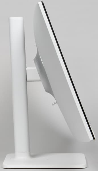 Все интерфейсные разъемы и разъем питания расположены в незамкнутой нише на задней панели и ориентированы вниз. Подключаться к этим разъемам в обычном положении блока экрана неудобно, но его можно повернуть в портретную ориентацию, что существенно облегчает доступ к разъемам. Кроме того, на нижнем торце можно обнаружить разъем для кенсингтонского замка. Сзади монитор выглядит очень аккуратно.