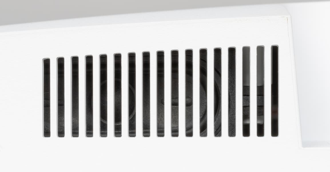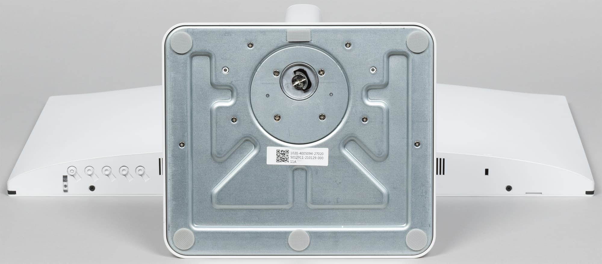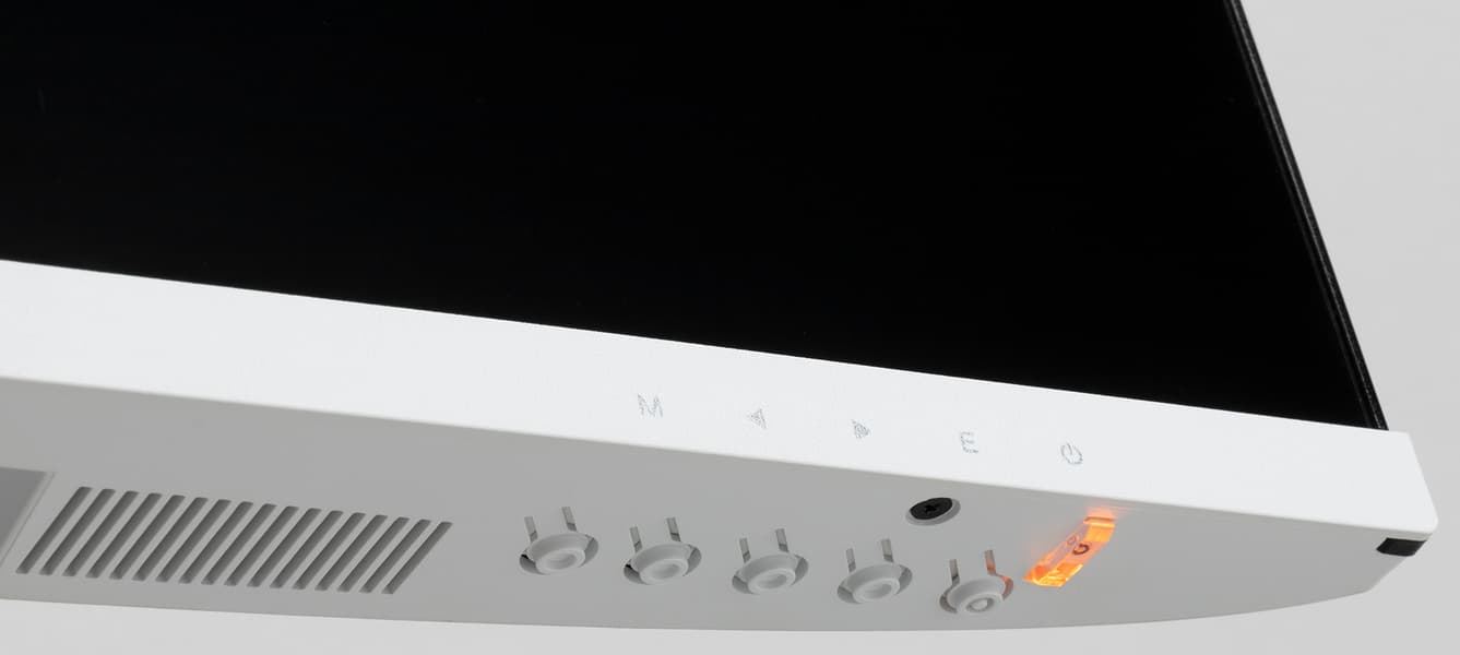 На верхнем и на нижнем торцах есть вентиляционные решетки. За решетками снизу расположены встроенные в монитор громкоговорители с вытянутыми диффузорами. Громкоговорители установлены в корпусах, закрепленных на упругих стойках.