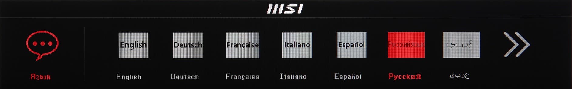 Есть русская версия экранного меню. Кириллический шрифт меню кривоват, так как используется смесь букв разных языков, качество перевода на русский язык приемлемое, но есть непереведенные места.