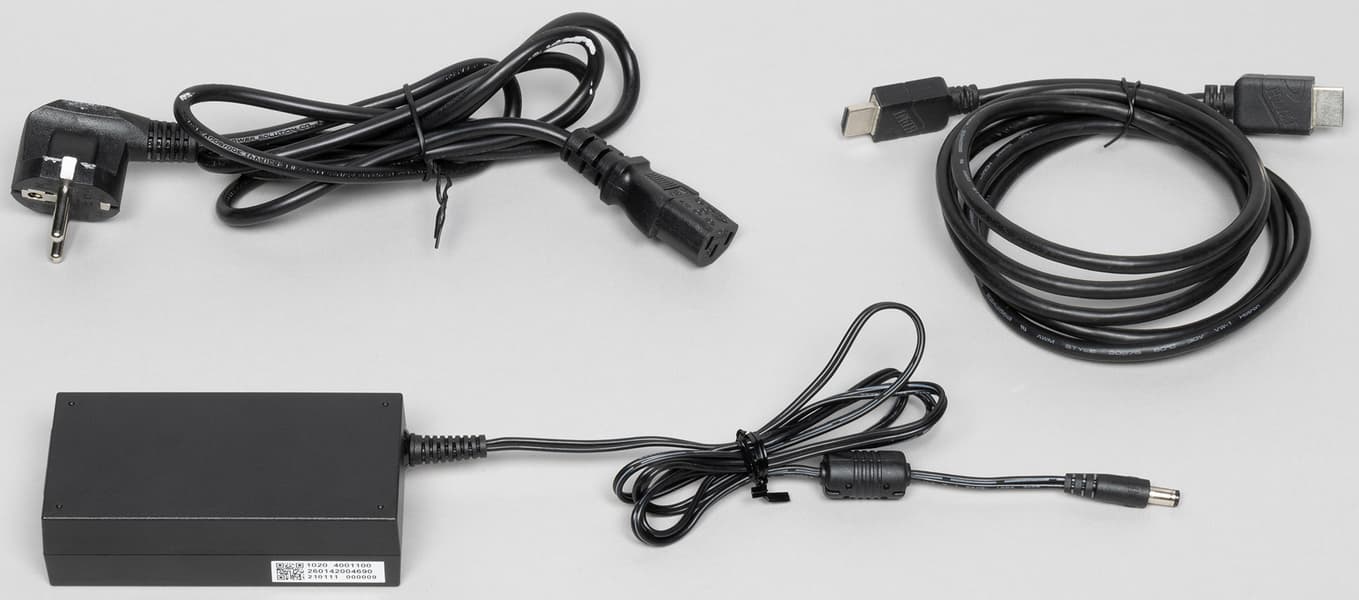 Производитель приложил к монитору два кабеля, среди которых кабеля USB-C, к сожалению, нет.